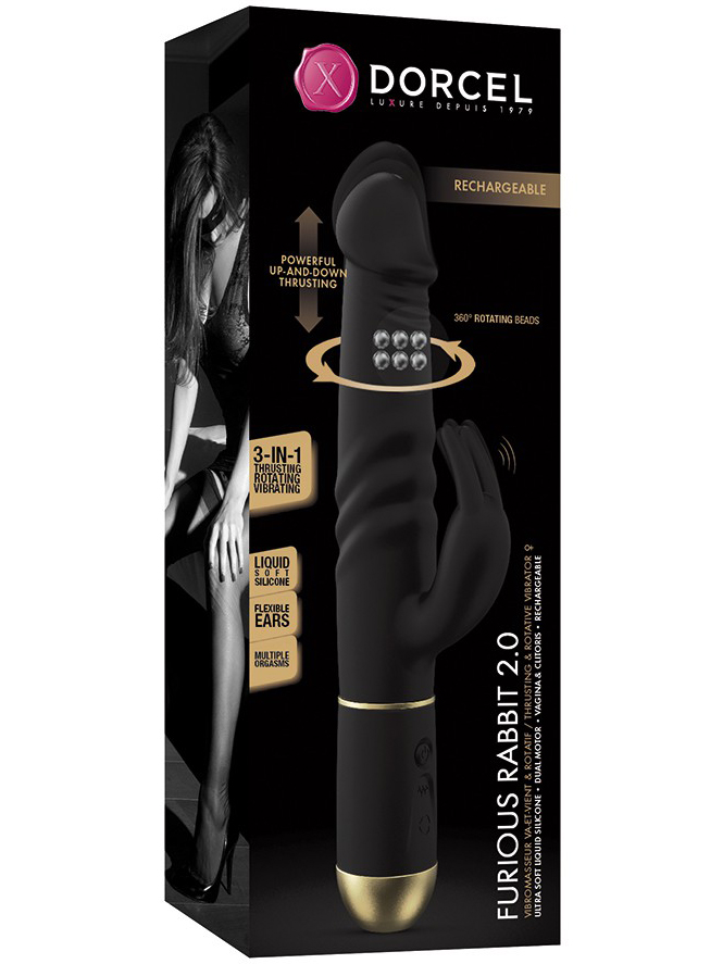 Vibrátor Furious Rabbit 2.0 promasíruje bod G přírazy. Navíc má rotační perly, pomocí kterých stimuluje poševní stěny, a vibračního králíčka pro potěšení klitorisu.