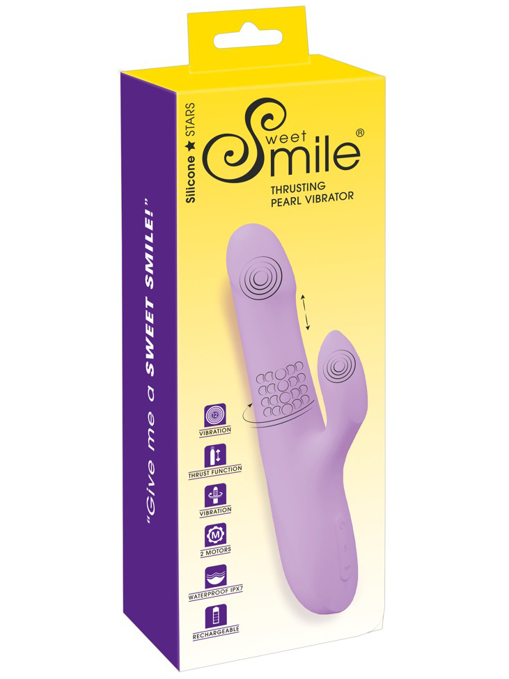 Vibrátor Sweet Smile potěší bod G a poševní stěny kombinací přírazů, vibrací a rotačních perel, zatímco klitoris si užije vibrace.