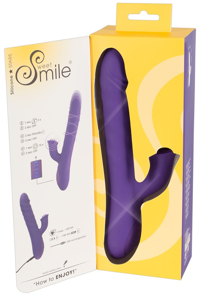 Vibrátor Sweet Smile potěší bod G kombinací přírazů a rotačních perel, zatímco klitoris si užije vibrace.