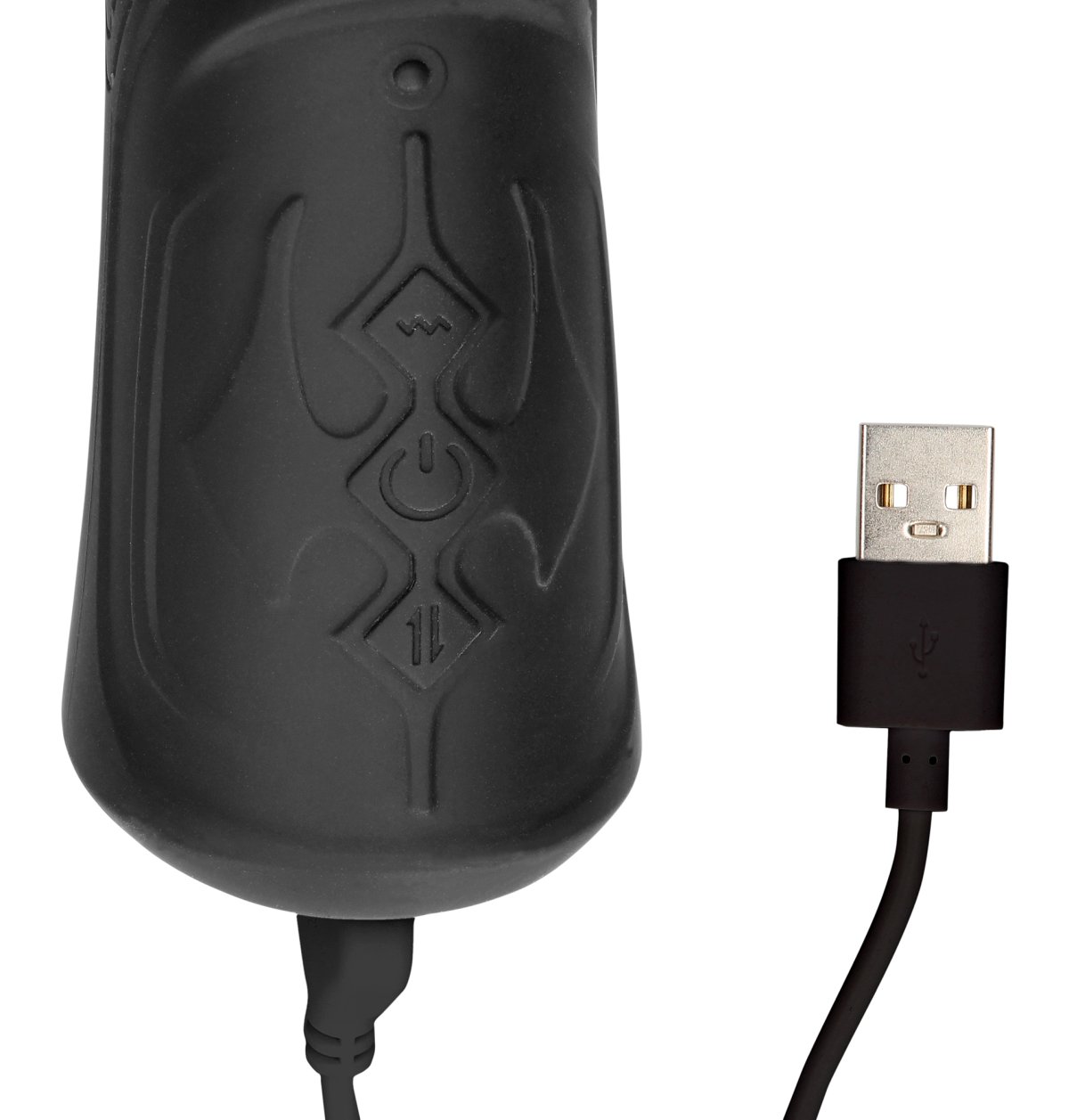 Vibrátor vám nabídne kombinaci přírazů a extra silných a hlubokých vibrací. Hodí se na vaginální i anální stimulaci – rozšíření u rukojeti poslouží jako zarážka pro bezpečné hry.