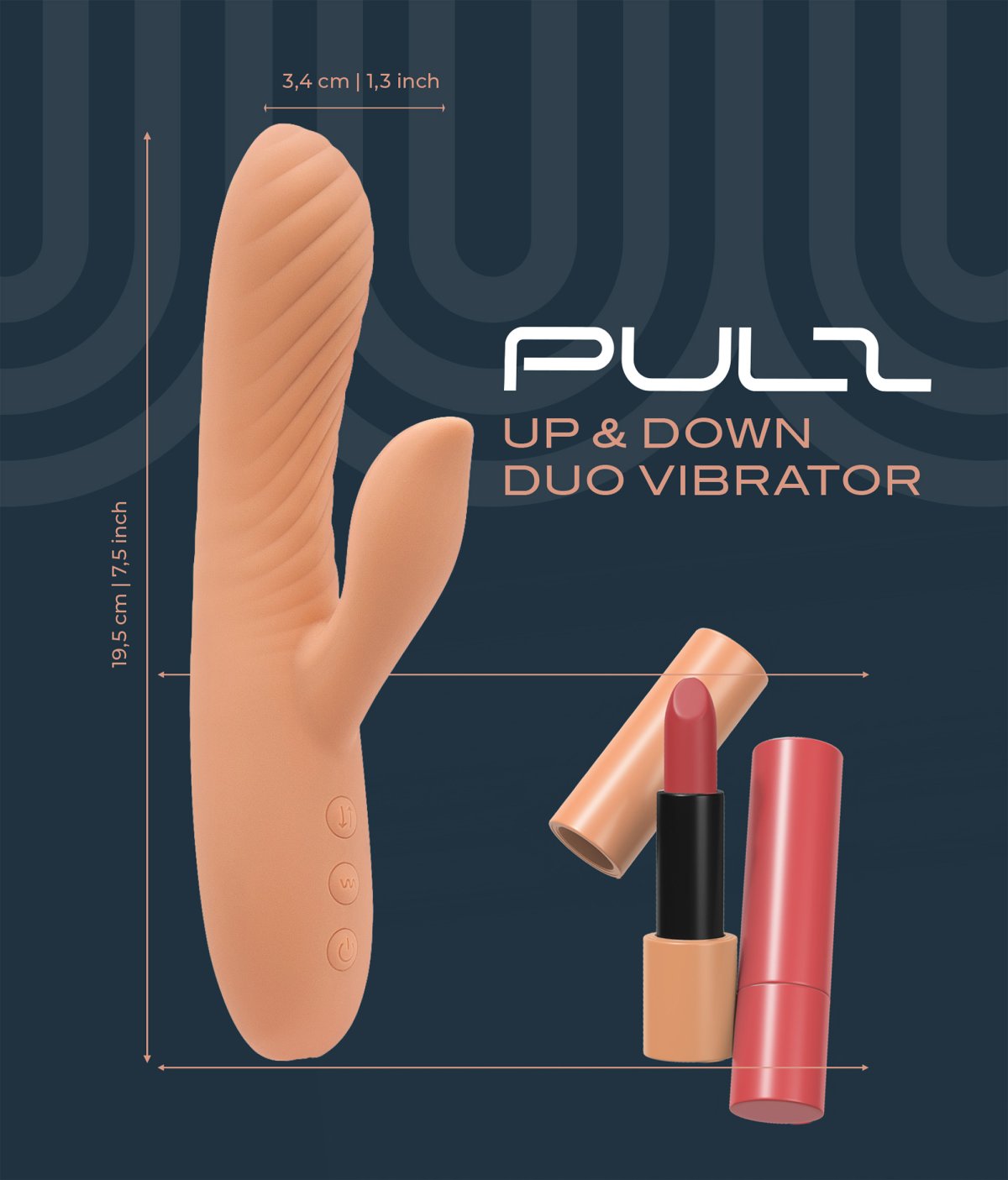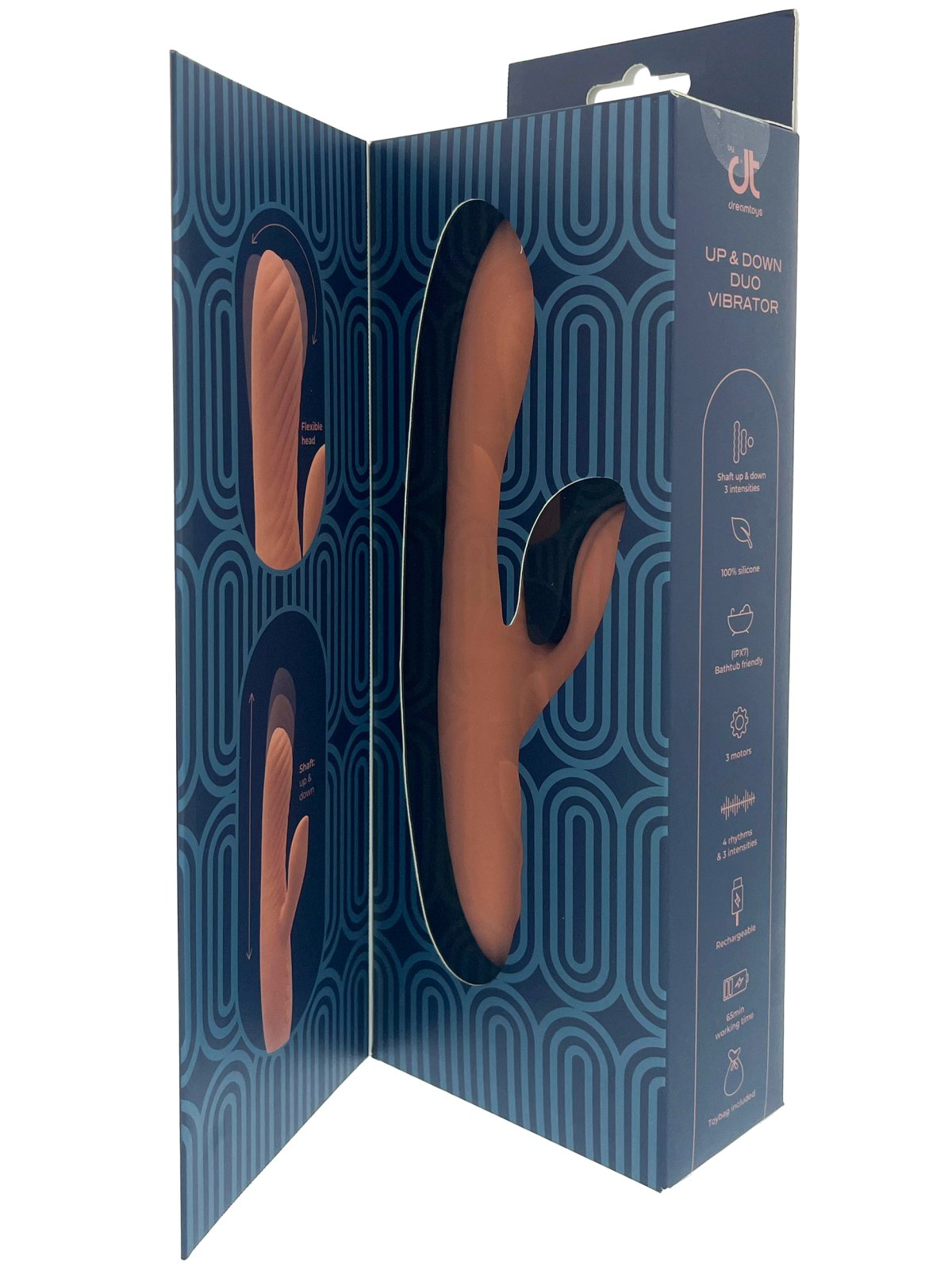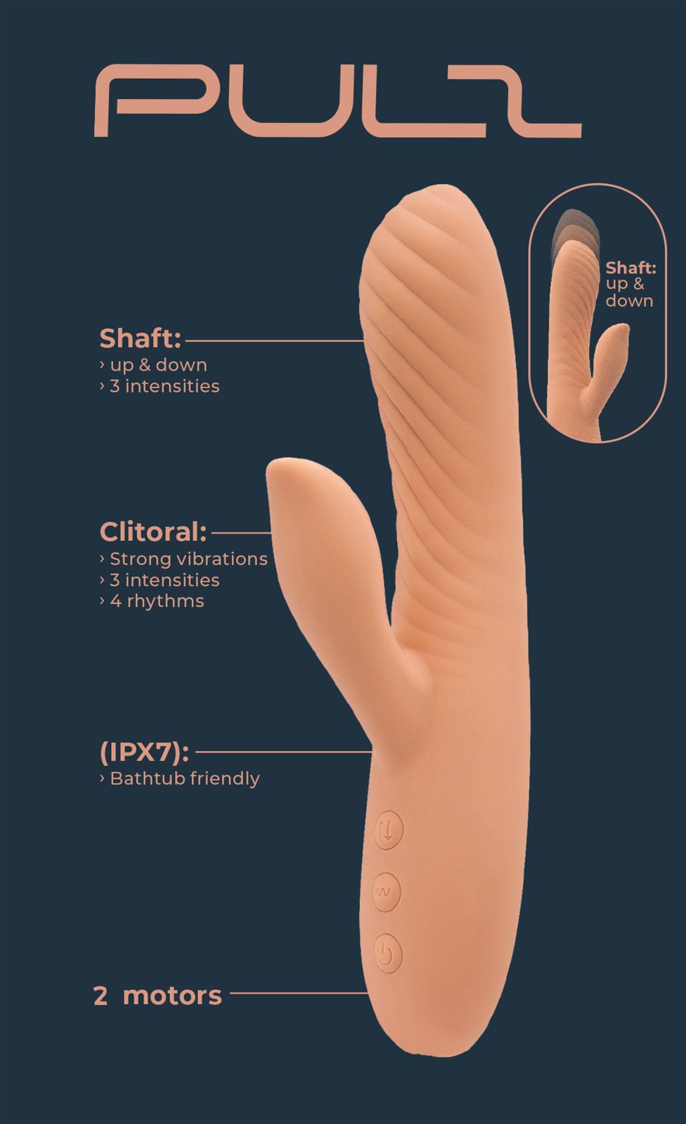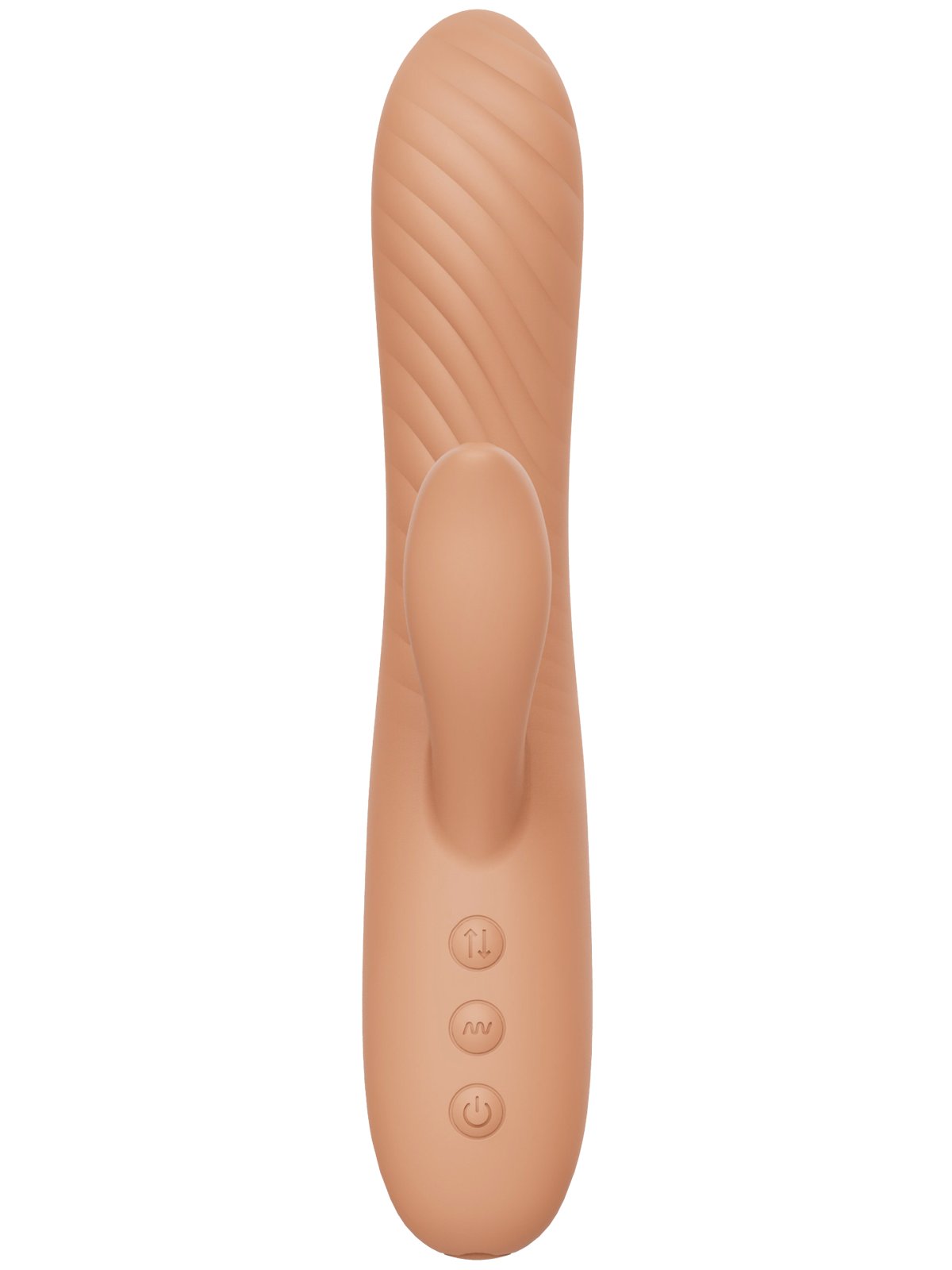 Vibrátor promasíruje bod G intenzivními přírazy, zatímco králíček se postará o vibrační potěšení klitorisu.