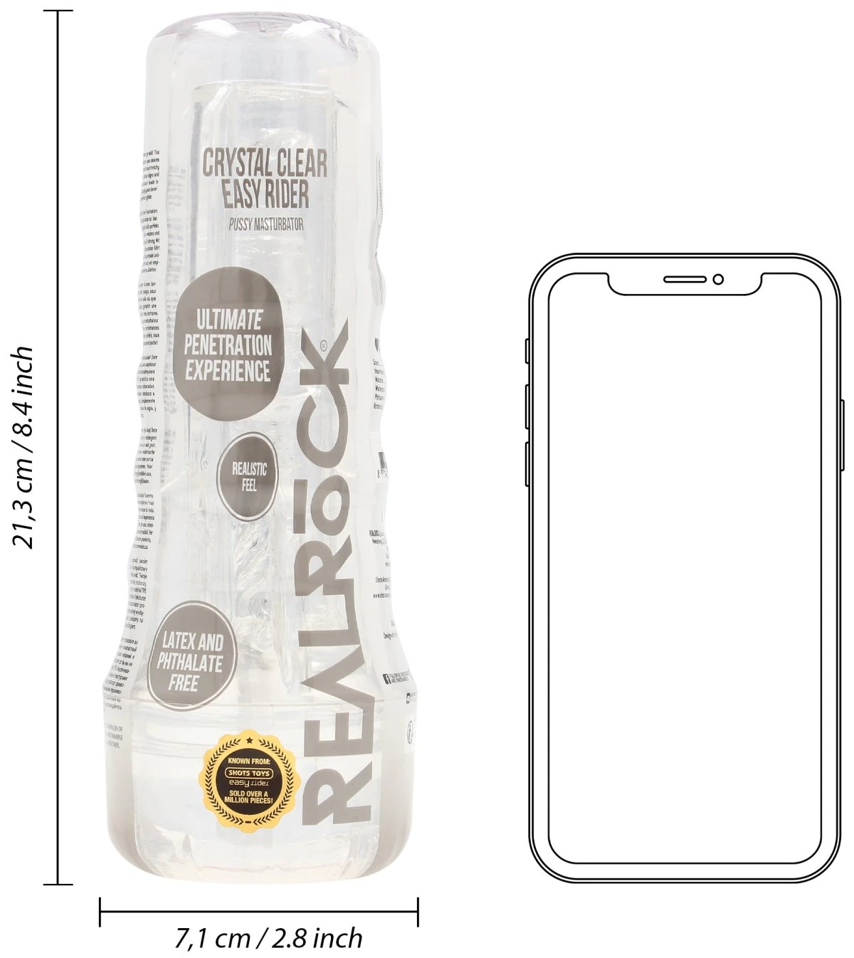 Vagina je realisticky vymodelovaná, uvnitř má výraznou stimulační texturu a je průhledná – sledování penisu v akci pozvedne váš masturbační zážitek na novou úroveň.