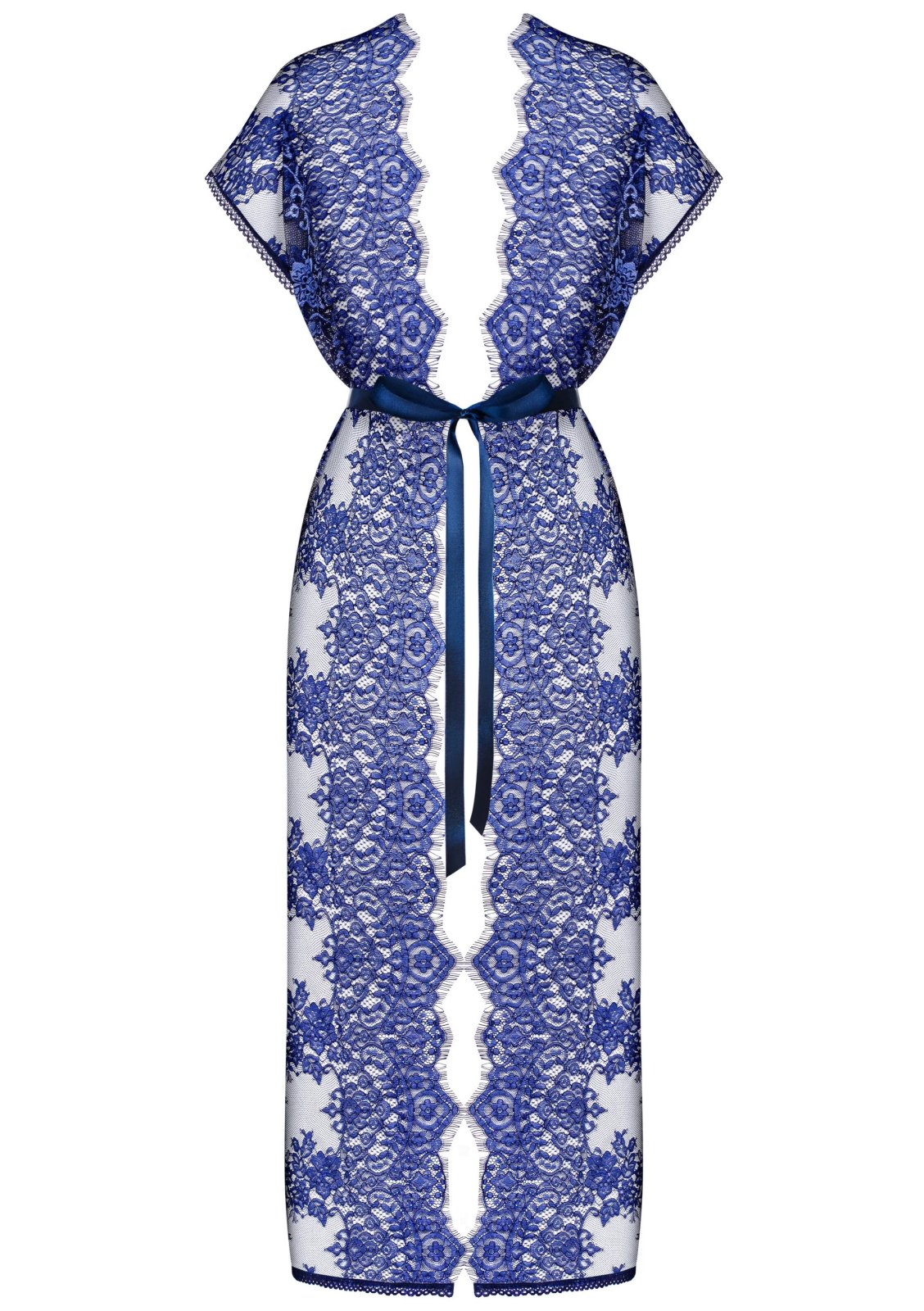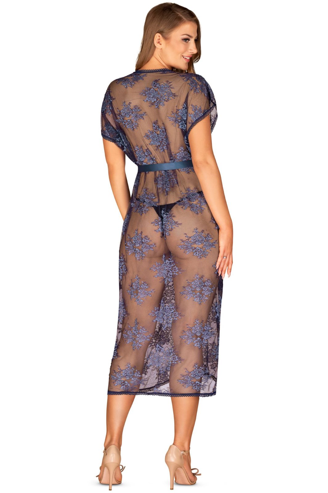 Elegantní dlouhé kimono Flowlace v neobvyklé modré barvě probudí vaši fantazii a v partnerovi zažehne jiskru touhy.