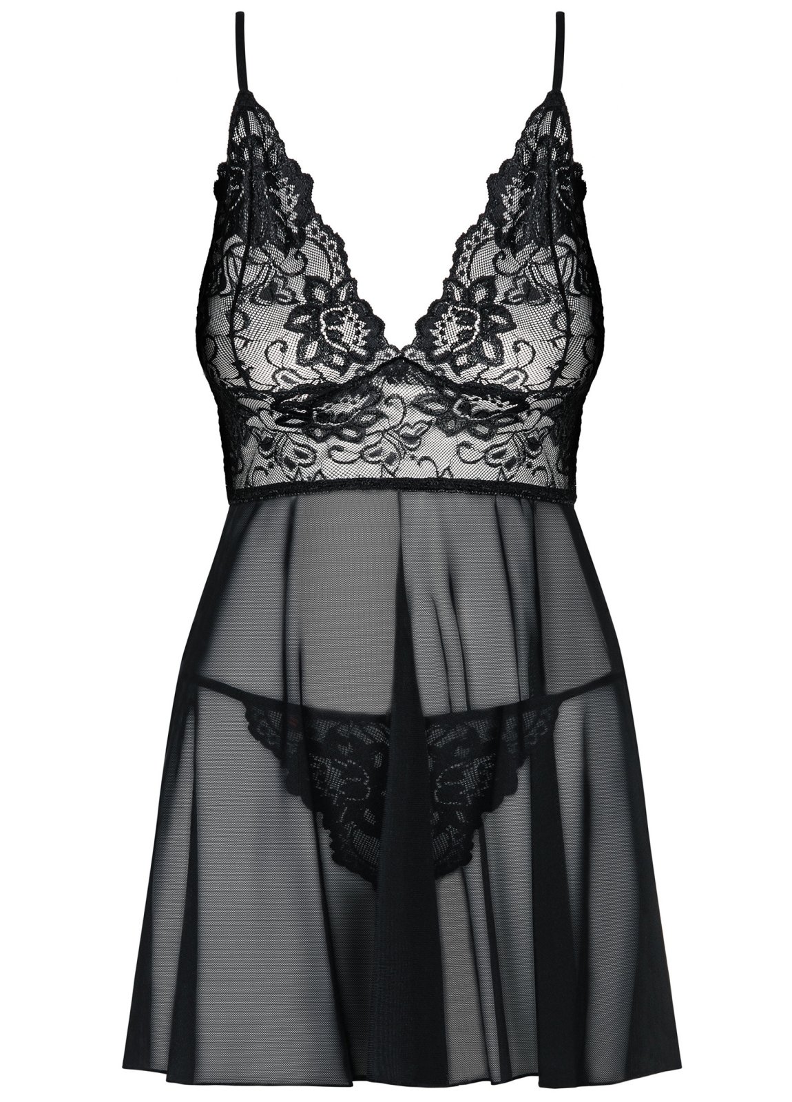 Průsvitný babydoll s krajkovým topem Obsessive Idillia