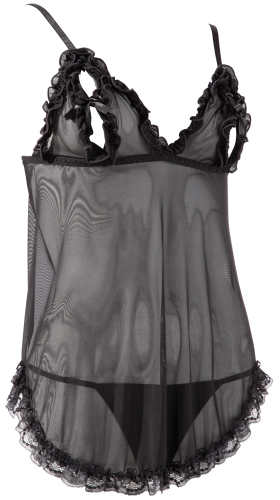 Průsvitný babydoll s průstřihy na prsou + tanga Cottelli