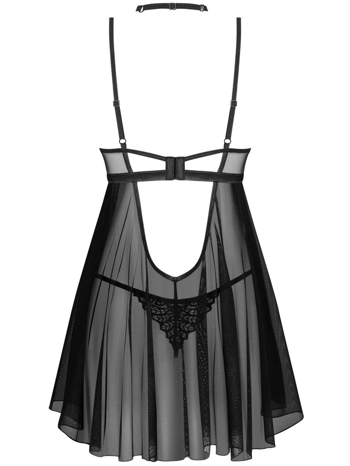 Průsvitný babydoll s tangy a ozdobným obojkem Obsessive Donarella