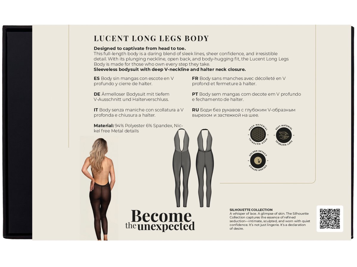 Catsuit je ušitý z měkké a elastické síťoviny s jemným vzorem – perfektně obepne křivky těla a pohodlně se nosí.