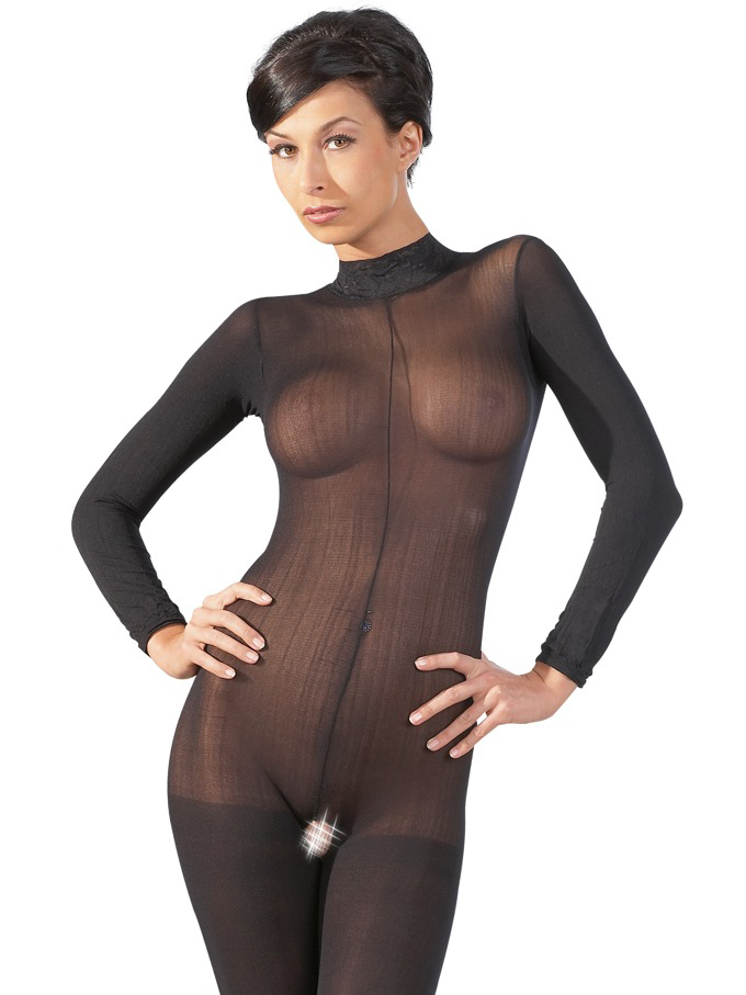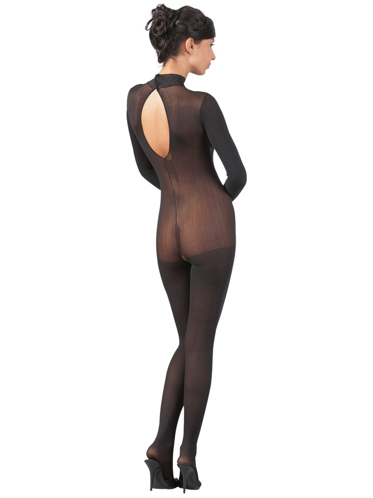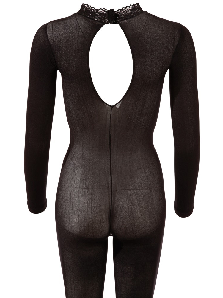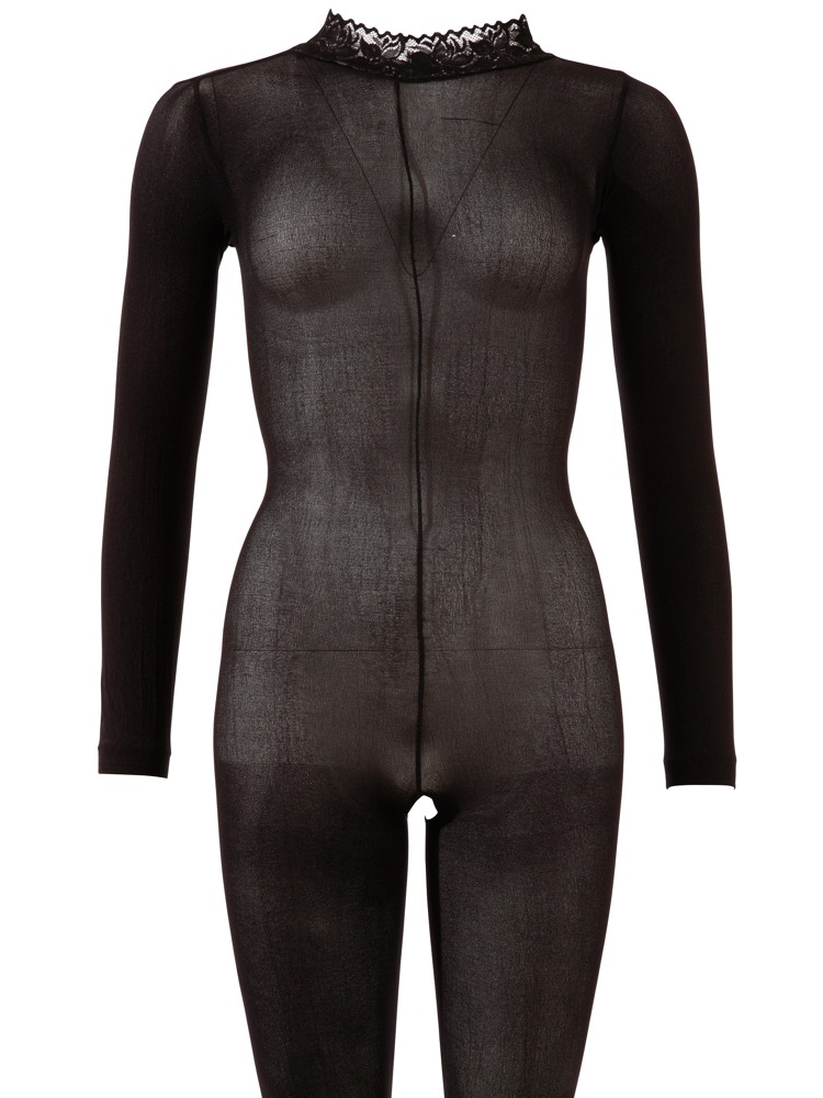 Průsvitný catsuit s krajkovým límečkem a otevřeným rozkrokem