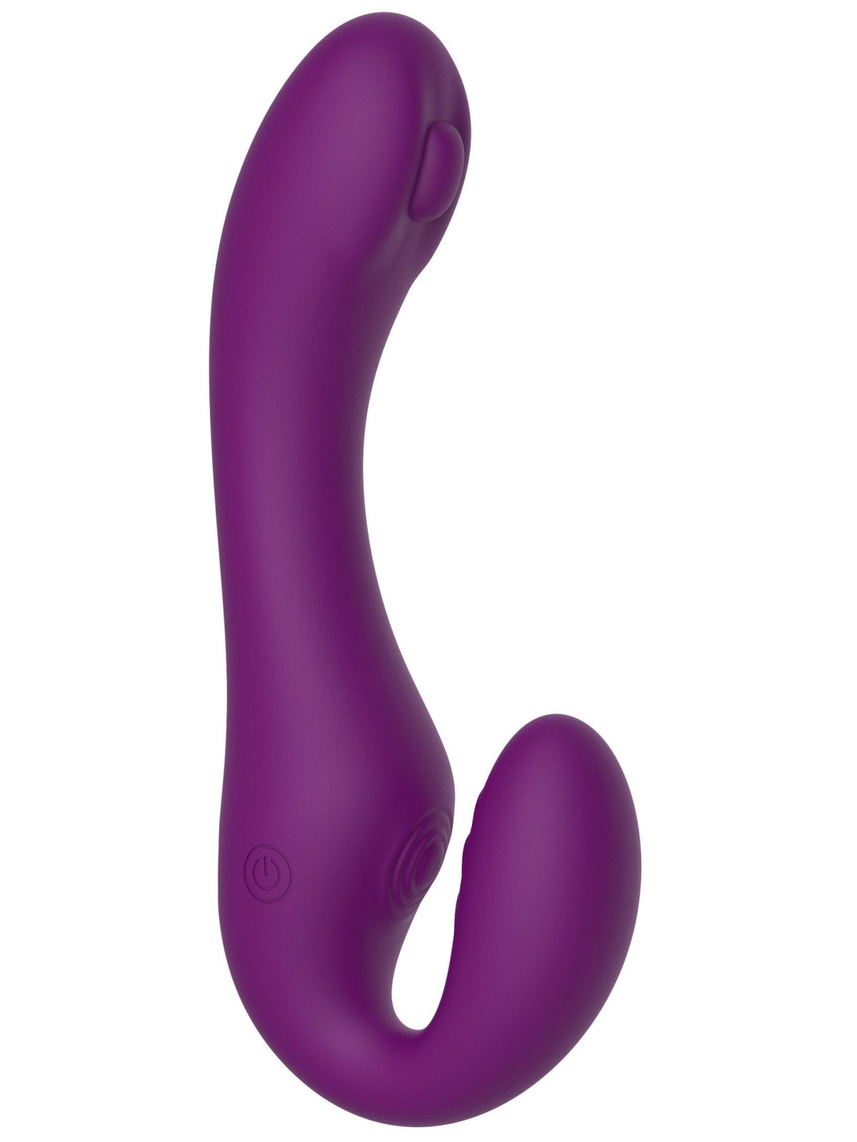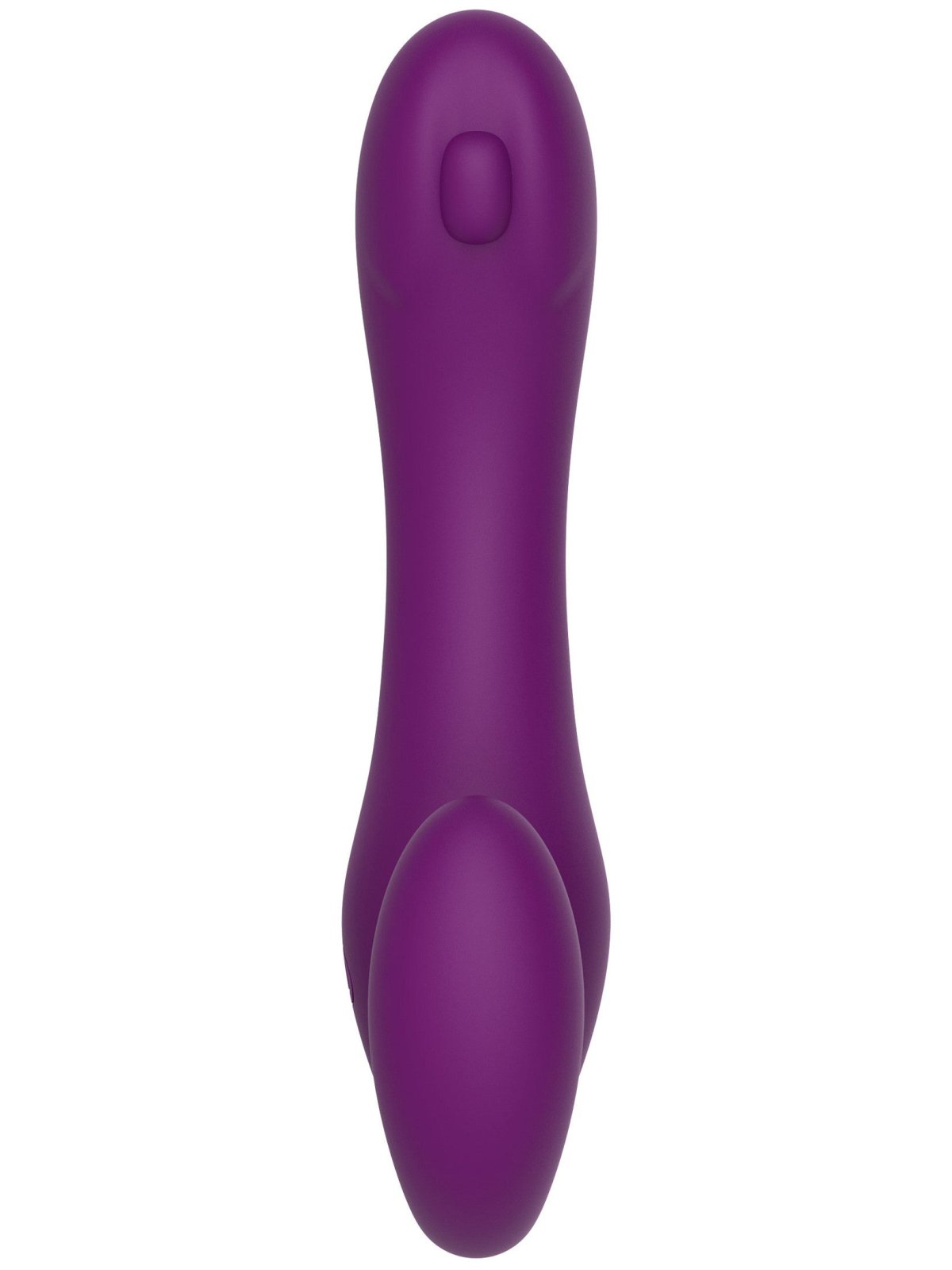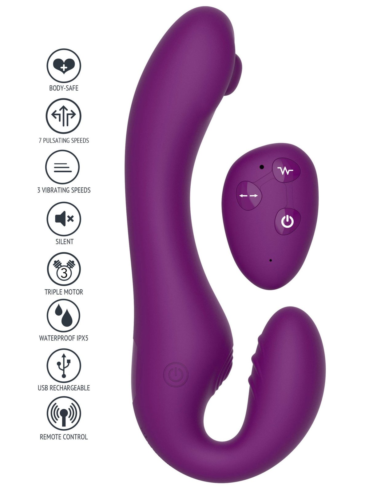 Samodržící strapon drží na místě bez popruhů a potěší oba dva v páru – hlavní část pulzuje, vaginální kolík a část pro stimulaci klitorisu vibrují.