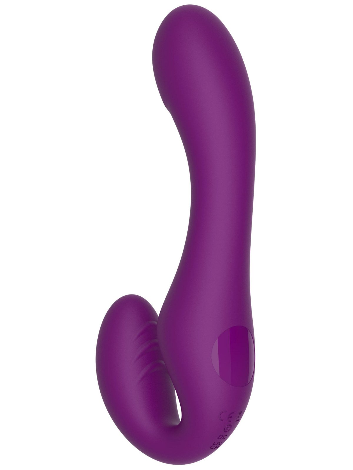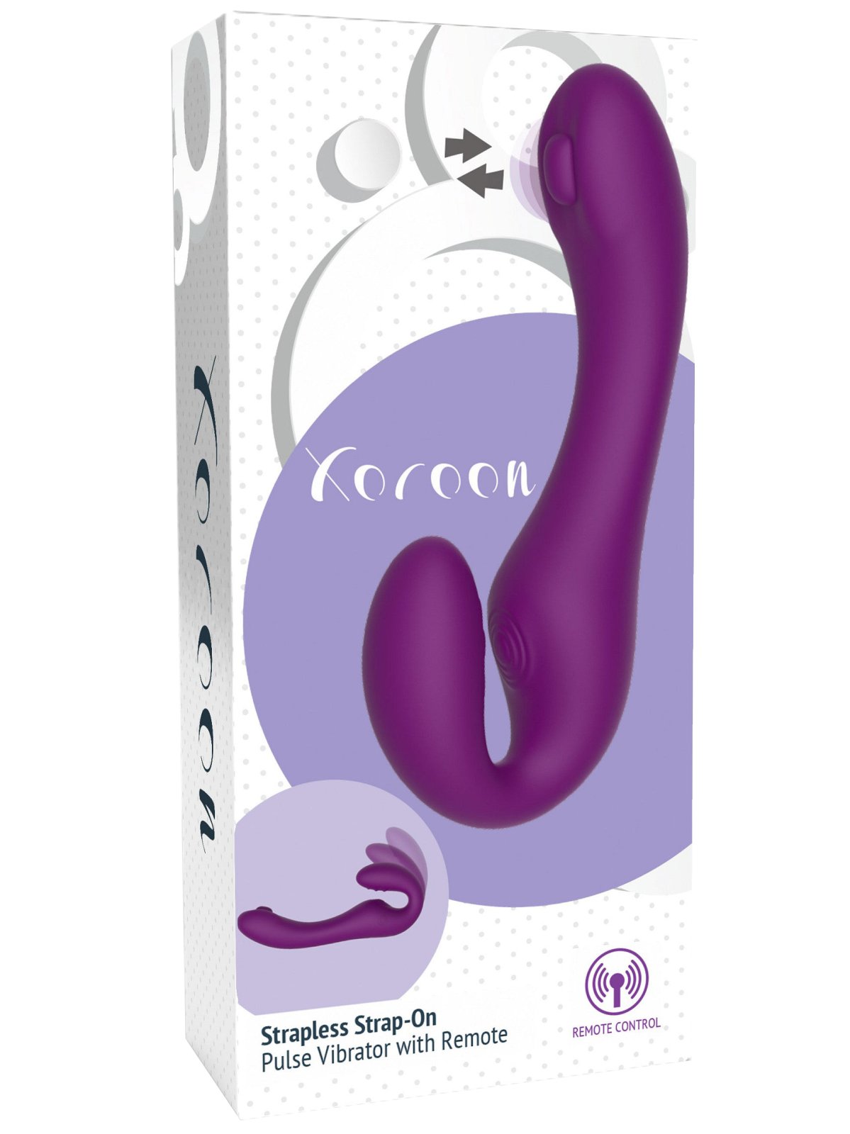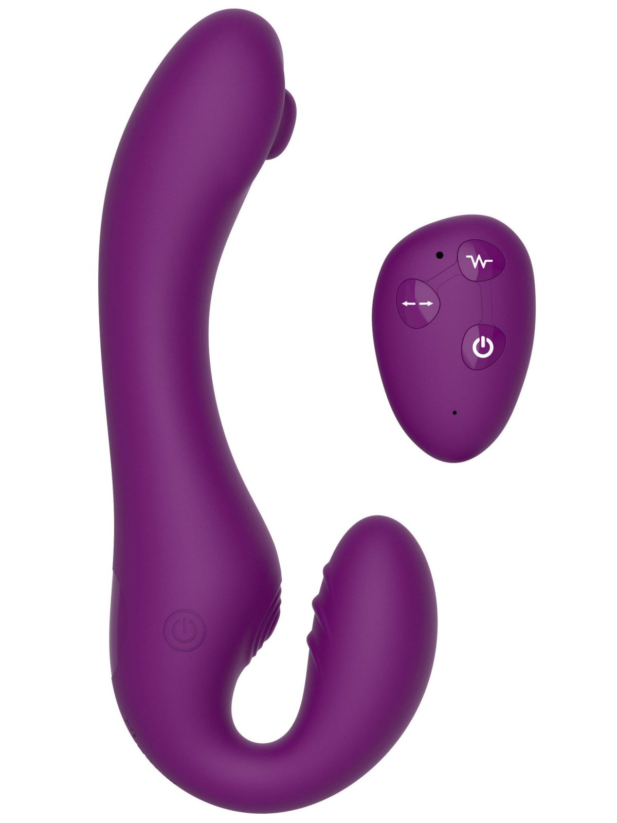 Samodržící strapon drží na místě bez popruhů a potěší oba dva v páru – hlavní část pulzuje, vaginální kolík a část pro stimulaci klitorisu vibrují.