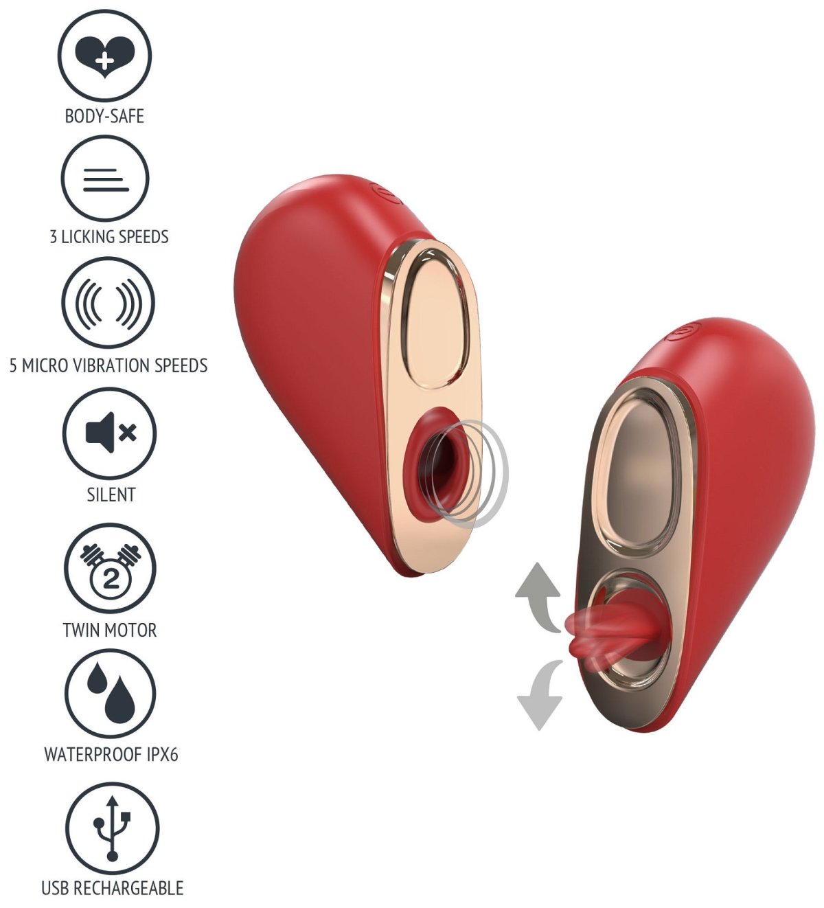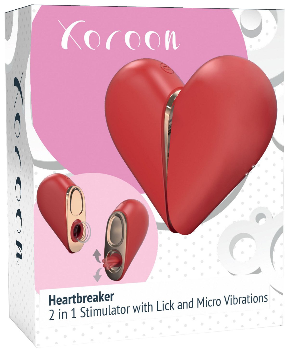 Stimulátor Heartbreaker v sobě ukrývá hned 2 samostatné hračky. Jedna strana zahrne klitoris tlakovými vlnami, druhá simuluje lízání pomocí ohebného jazýčku.