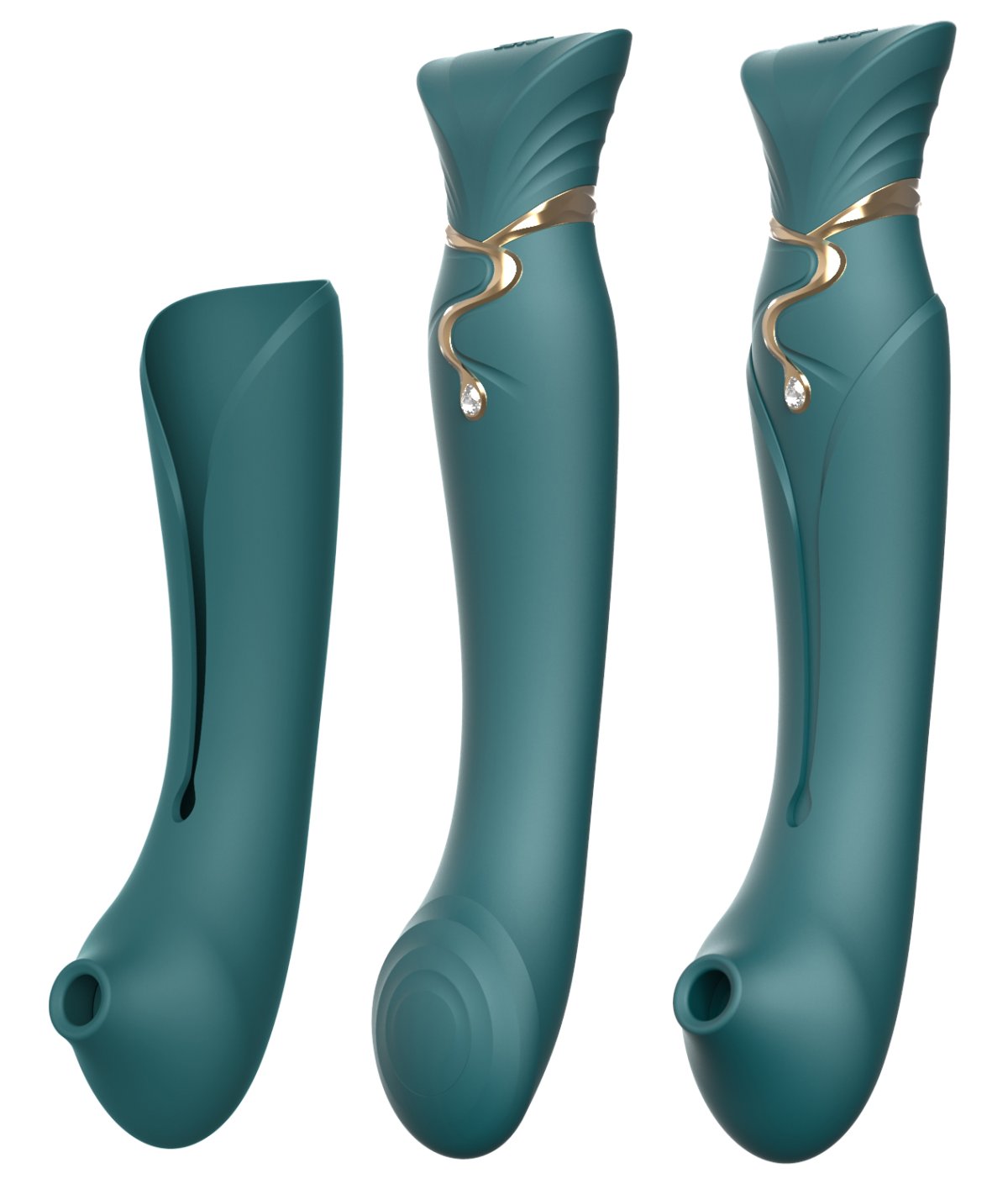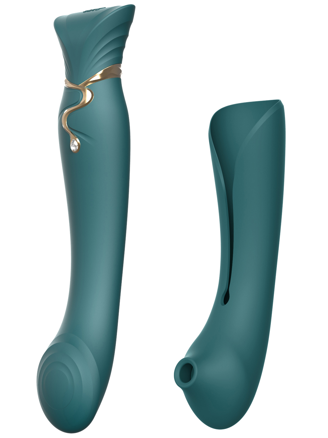 Vibrátor pulzuje, vibruje a hřeje a dá se ovládat i mobilem. Navíc k němu dostanete silikonový návlek, který ho promění v sací stimulátor.