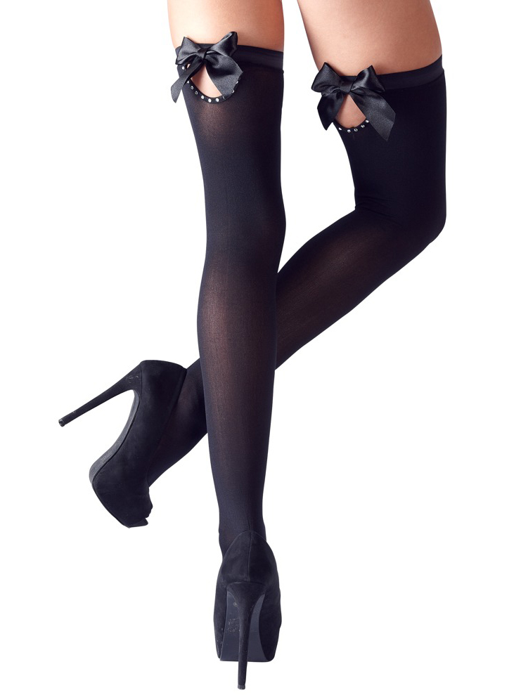Punčochy s mašličkou a třpytivými kamínky Cottelli neprůhledné