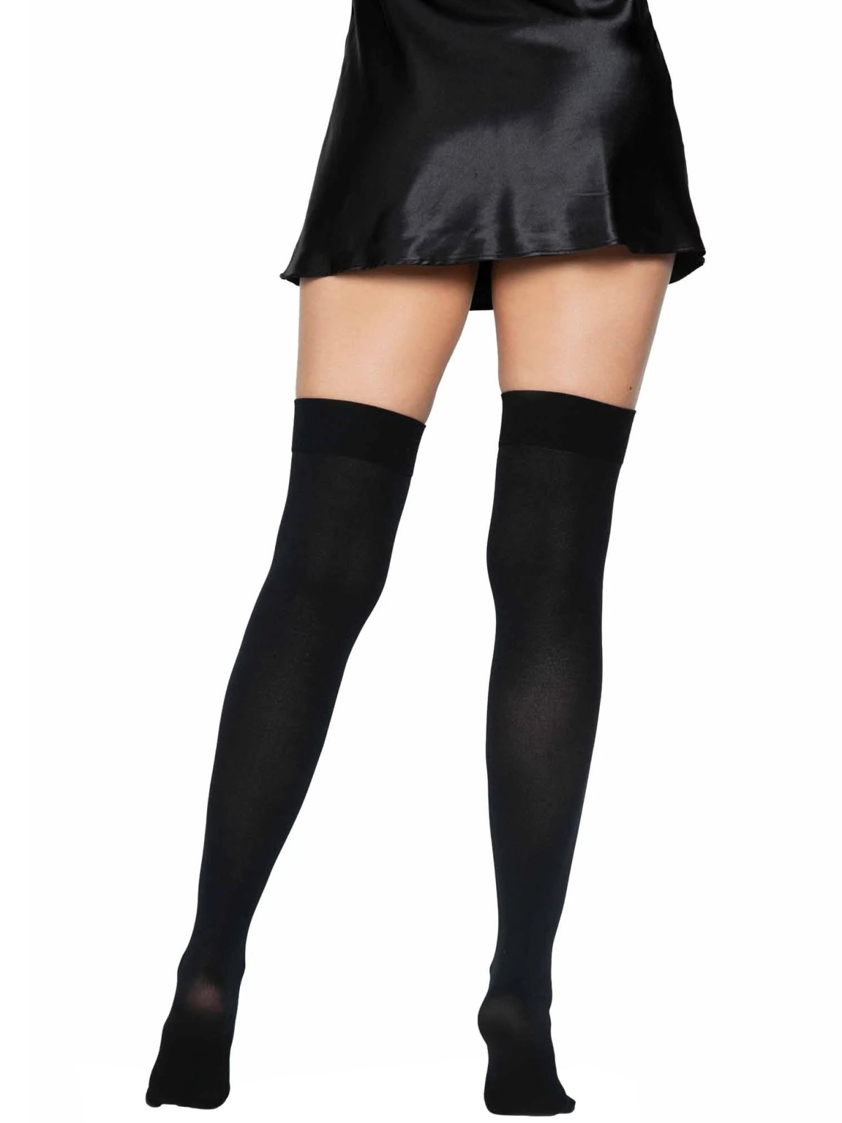 Punčochy jsou vyrobeny z neprůhledné černé látky, která příjemně obepne nohy, a ozdobené velkými saténovými mašlemi.