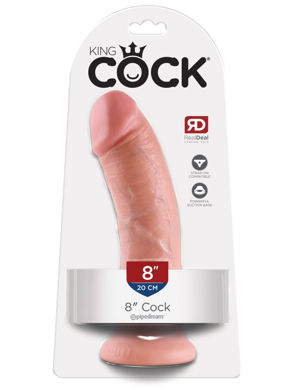 Realistické dildo King Cock 8" vás potěší většími rozměry a je mírně zahnuté pro příjemnější stimulaci bodu G či prostaty.