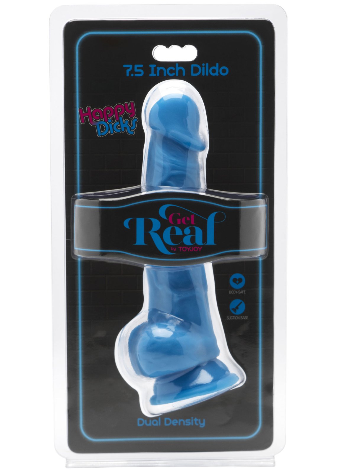 Realistické dildo s varlaty a přísavkou Happy Dicks 7.5" modré