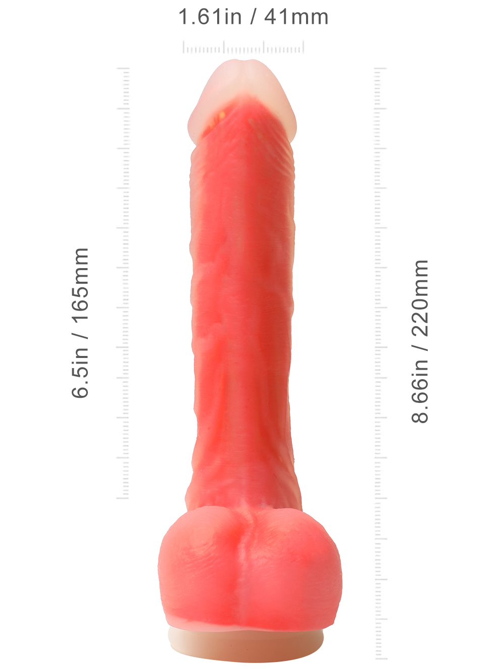 - Rozměry: celková délka 22 cm (včetně přísavky), zasunutelná délka 16,5 cm, max. průměr 4,1 cm