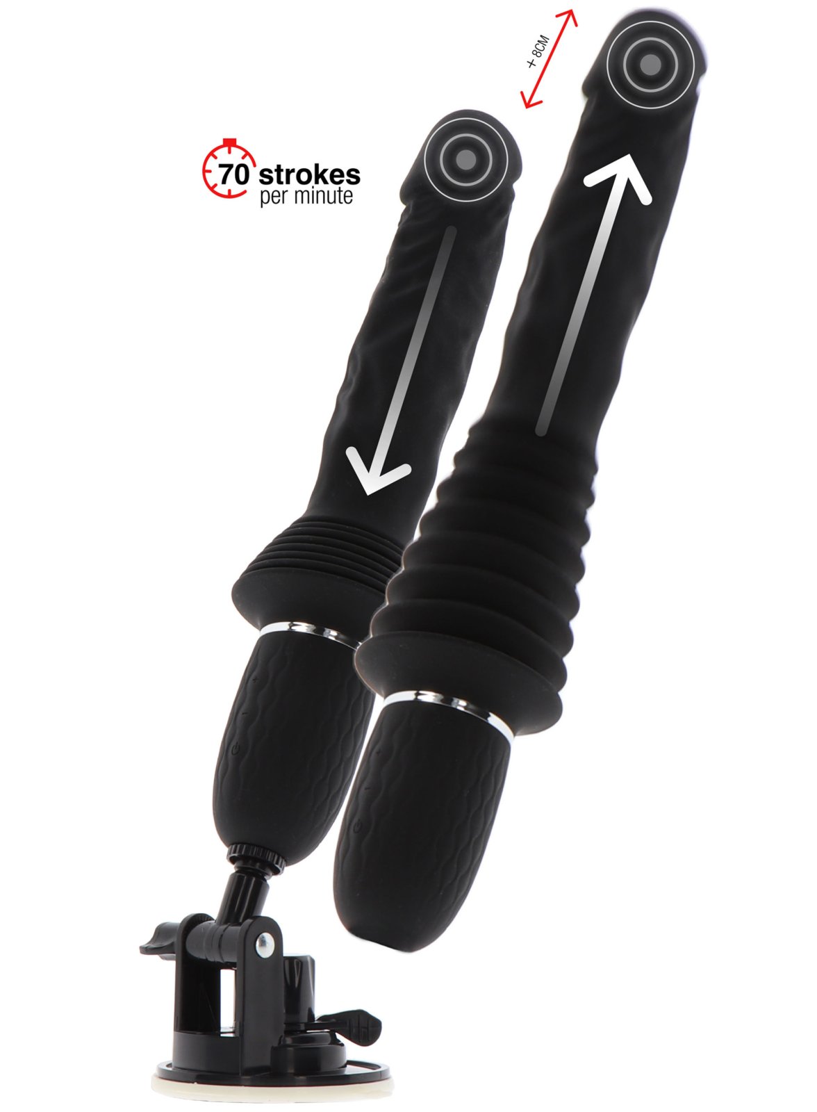 K vibrátoru dostanete extra silnou přísavku s nastavením úhlu. Je odnímatelná a k vibrátoru ji jednoduše přišroubujete. Díky přísavce můžete vibrátor přicucnout k jakékoliv hladké a čisté ploše a užít si hands-free masturbaci (s volnýma rukama).