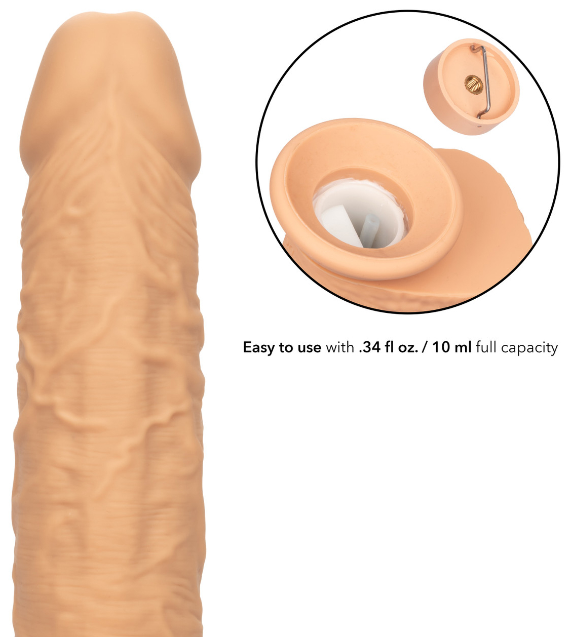 Na spodní straně vibrátoru najdete zátku, pod kterou se ukrývá nádržka na umělé sperma o objemu 10 ml.
