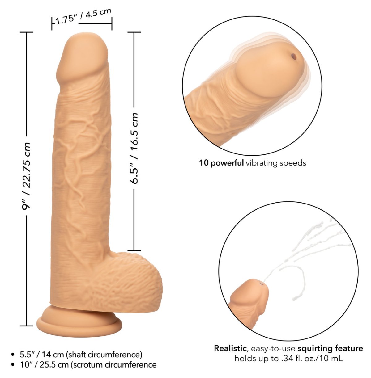 | Vlastnosti: | vibrační/pulsační programy, realistický vzhled, s přísavkou, výrazný žalud, stříkací |