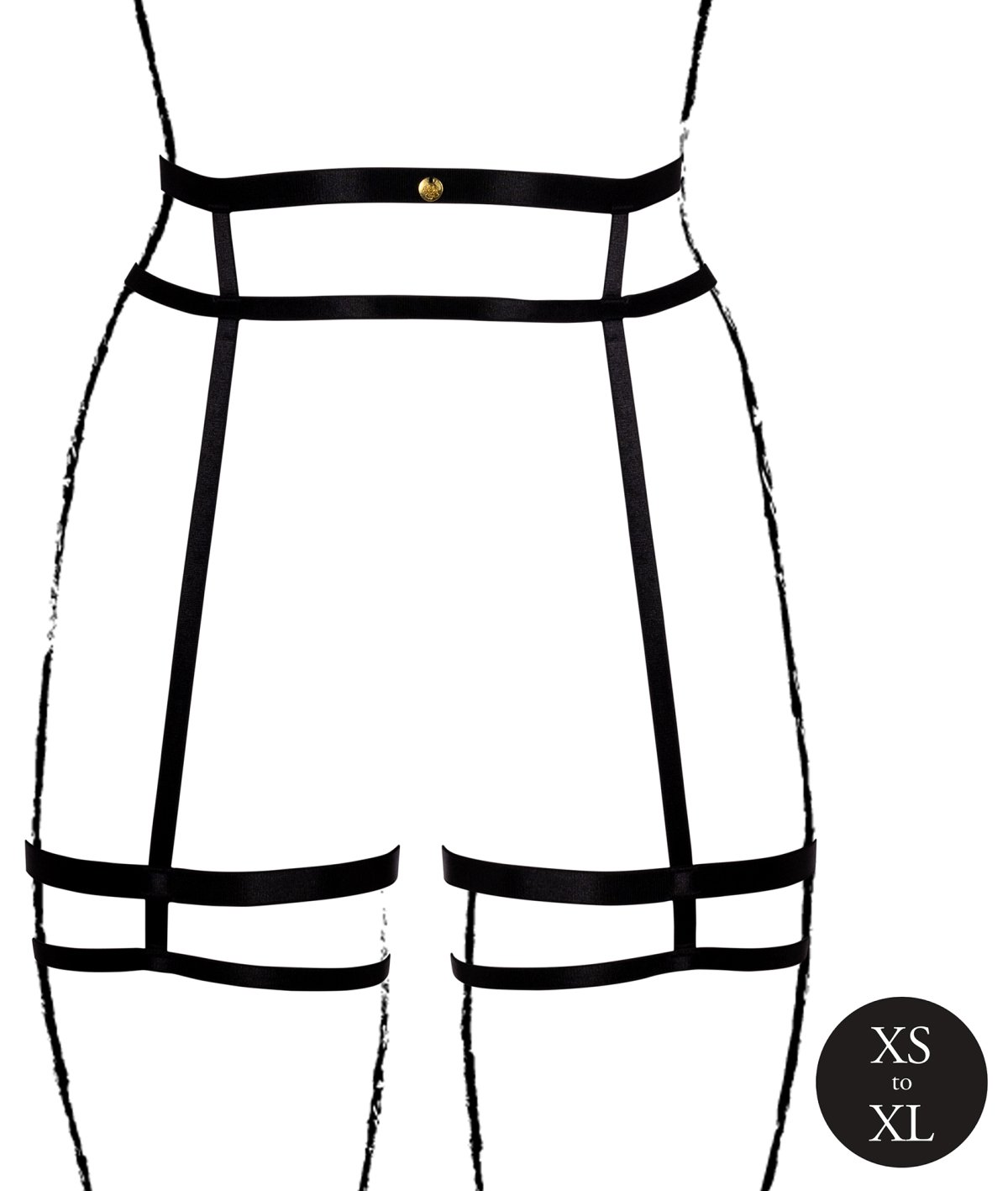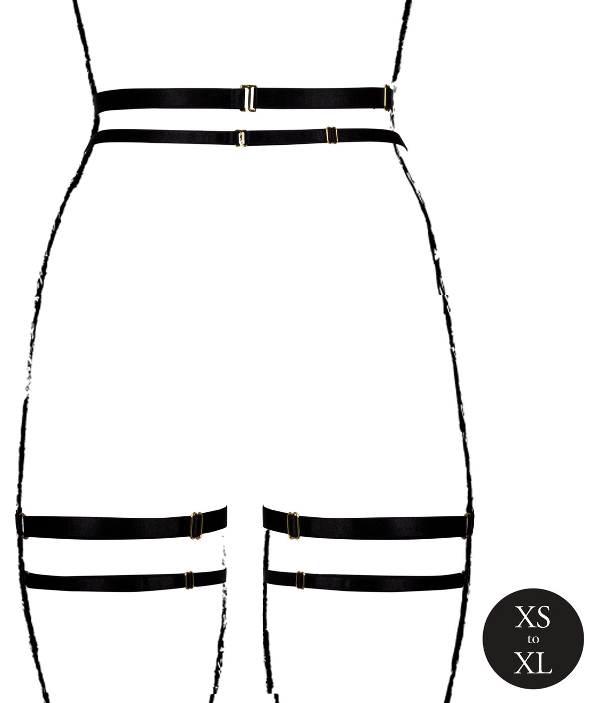 Podvazkový pás zvýrazní váš pas a je vyrobený z pružných textilních řemínků, které jsou délkově nastavitelné – velikost pásu i podvazků si tak snadno upravíte podle potřeby.
