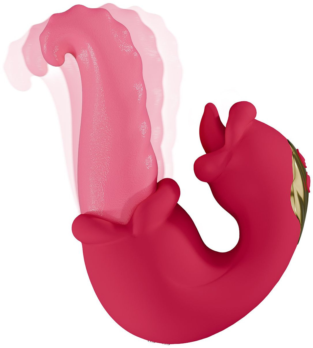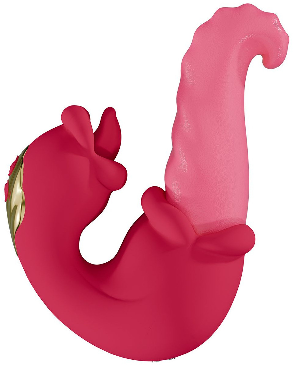 Vibrátor má dva měkké jazyky – ten větší rotacemi a vibracemi promasíruje bod G, ten menší provibruje klitoris.