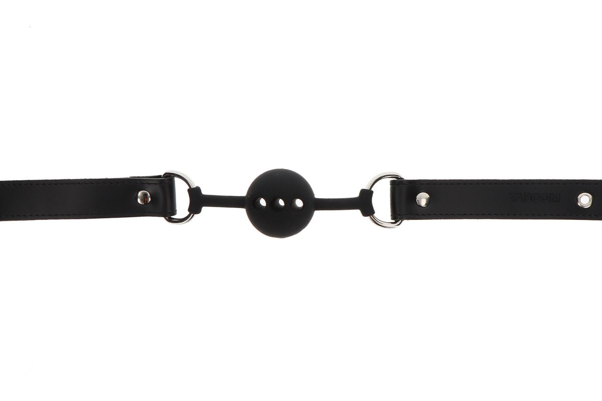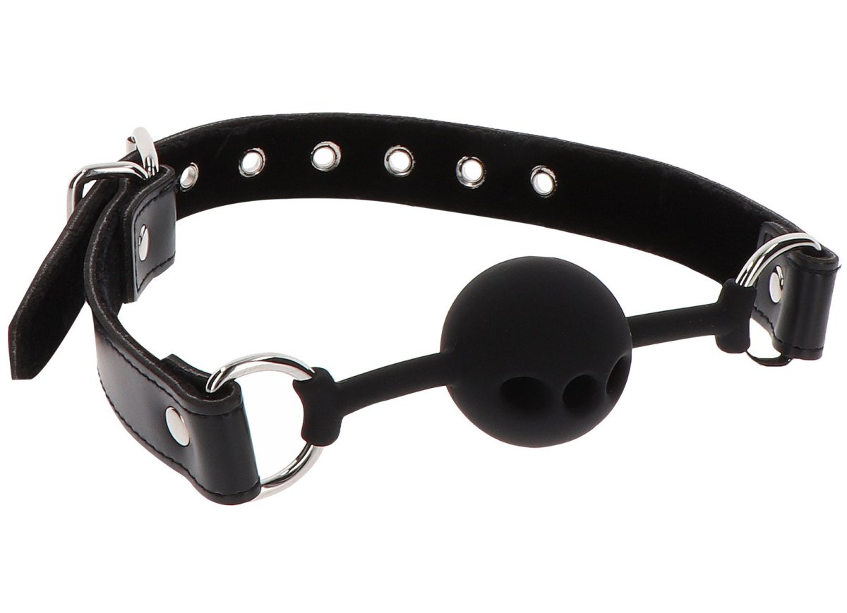 Kulička je upevněna na koženkovém řemínku, který je z vnitřní strany polstrovaný plyšem. Díky kovové přezce roubík snadno přizpůsobíte velikosti hlavy.