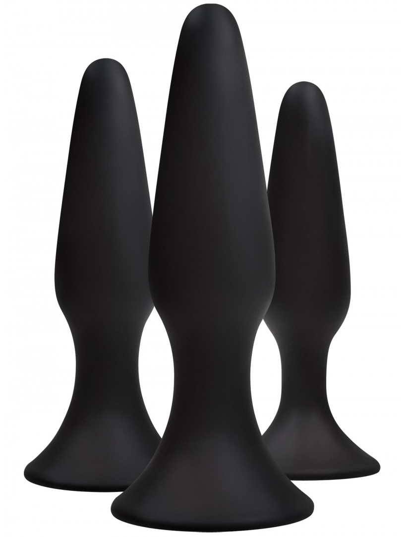 Sada obsahuje 3 kolíky o různé velikosti – je vhodná pro postupné roztahování análního otvoru. Mají silnou přísavku, která funguje i jako anální zarážka pro bezpečné hry.