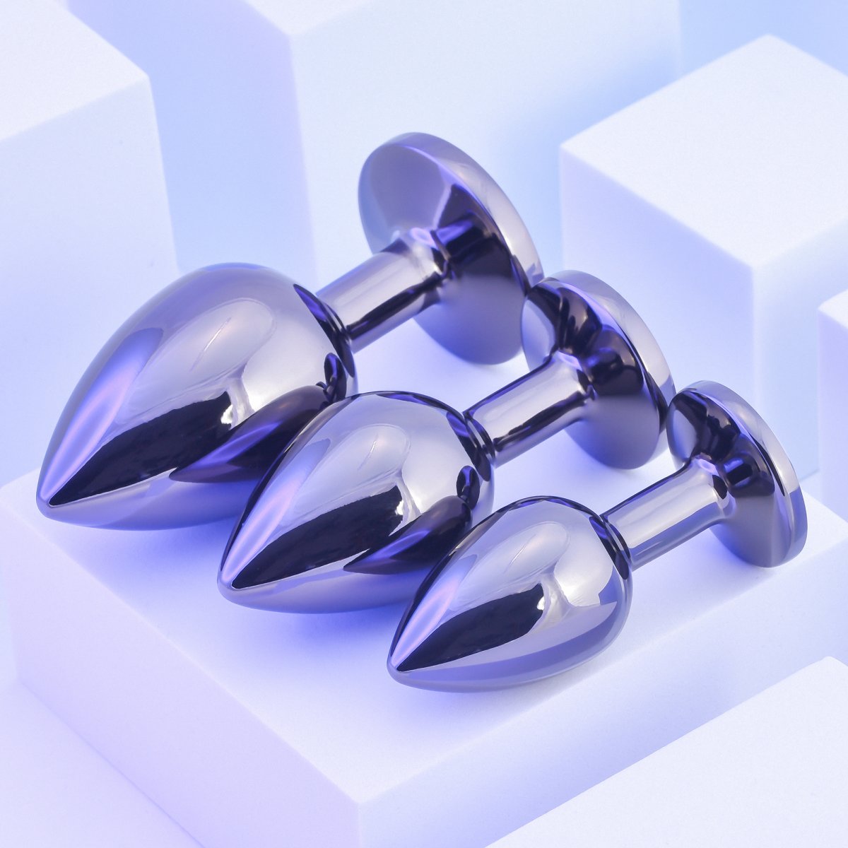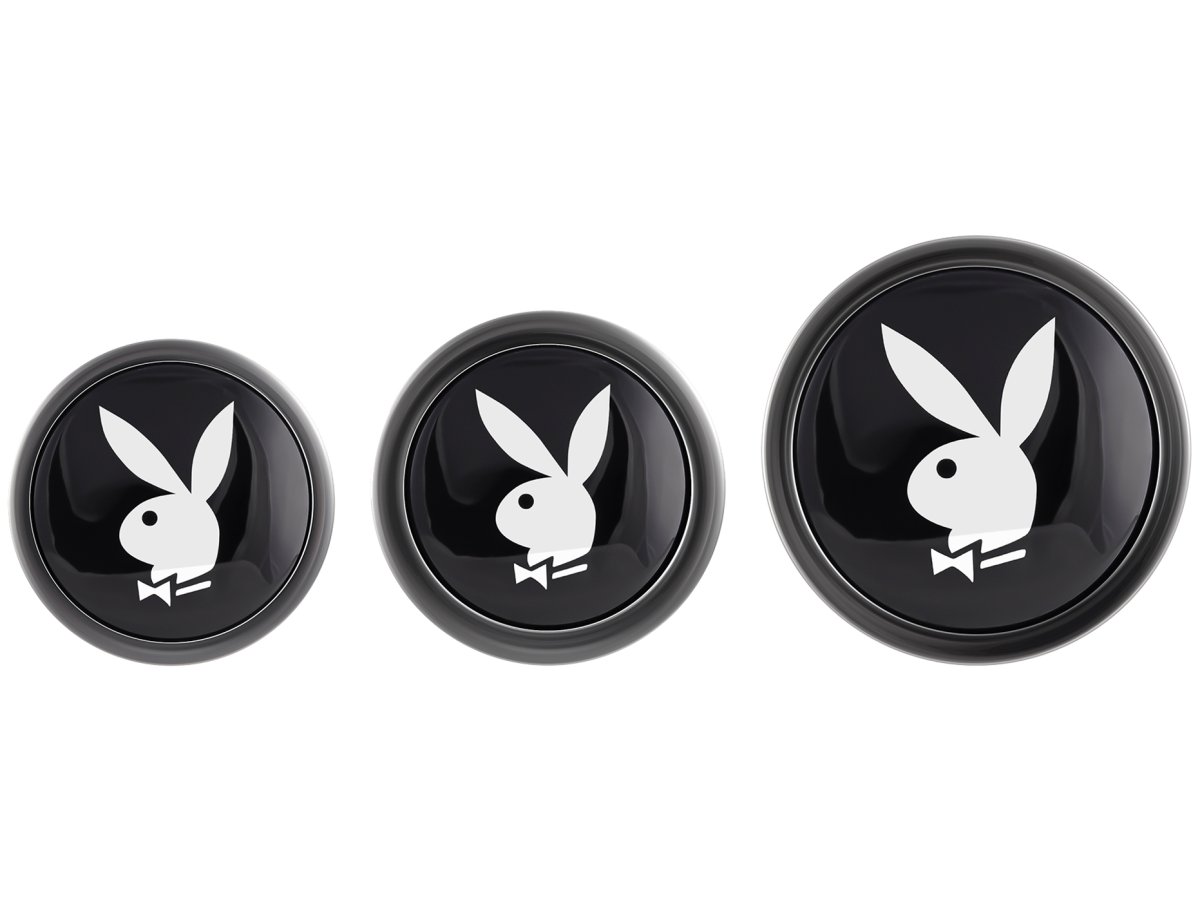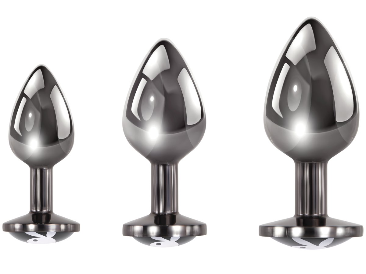 V sadě najdete 3 kolíky různé velikosti, které poslouží jako funkční anální hračka i ozdoba – na spodní straně mají skleněný krystal s obrázkem králíčka Playboye.