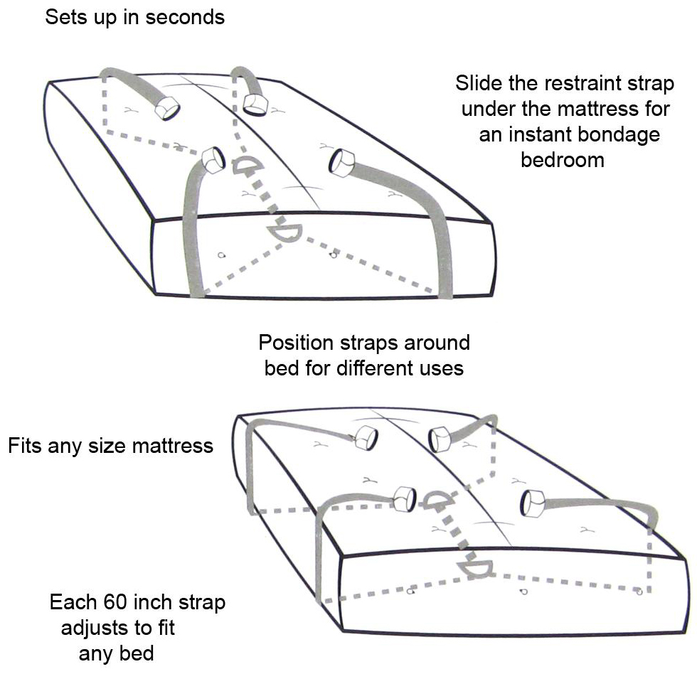 Sada S&M Sportsheets obsahuje popruhy, které provlečete pod postelí nebo matrací, a pouta na ruce a nohy.