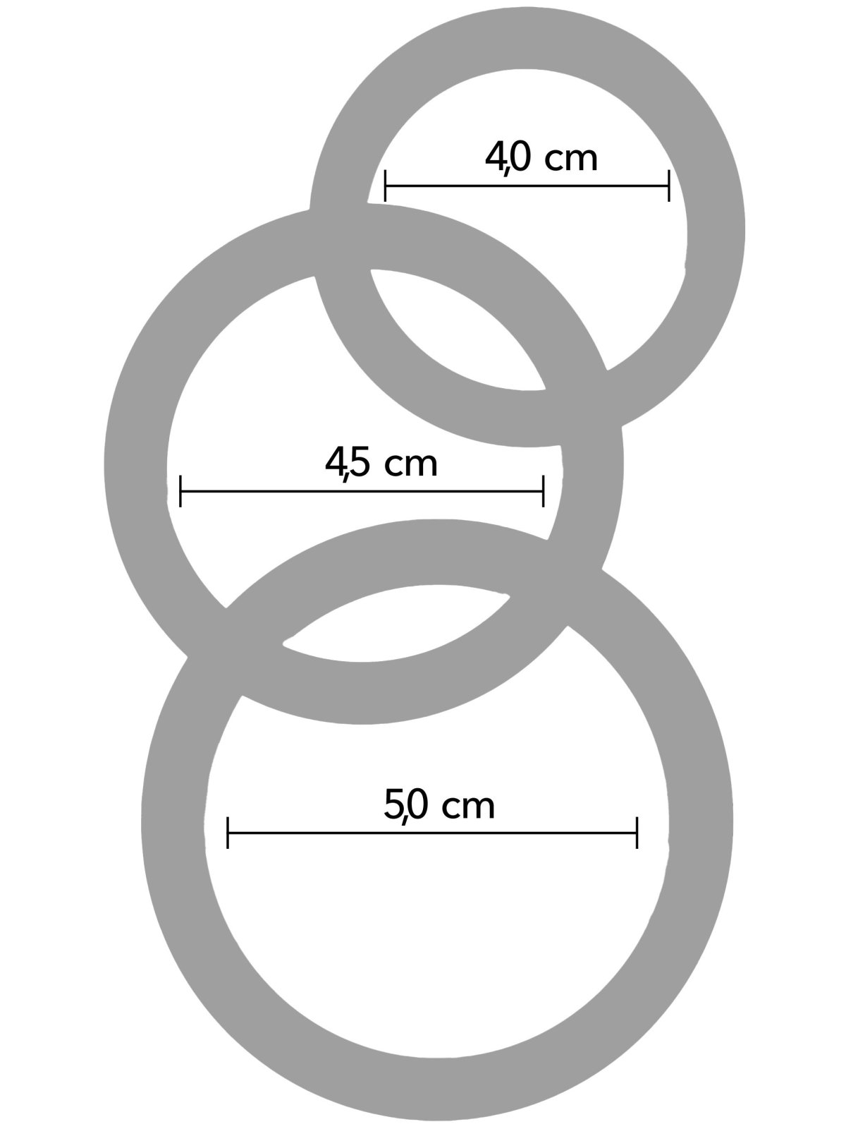 | Vnitřní průměr (kroužky, návleky): | 40 mm, 45 mm, 50 mm |