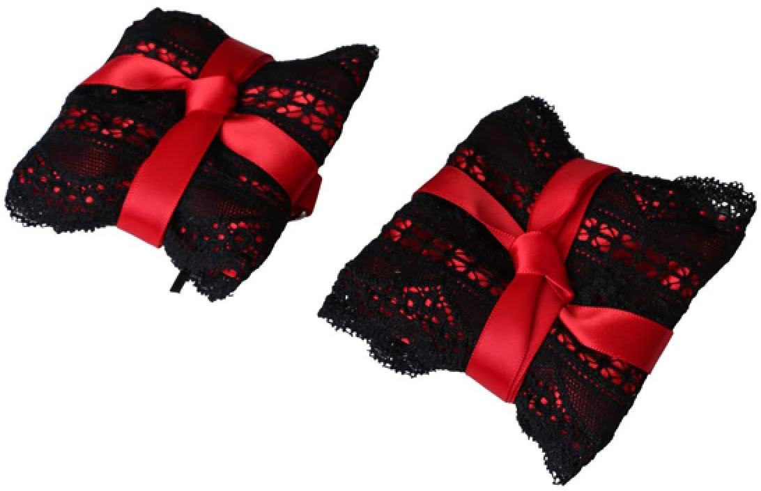 Pouta jsou měkčená a můžete je nosit jako náramky. Pokud budete chtít vyzkoušet bondage a mírné omezení pohybu, můžete je k sobě svázat pomocí červené stuhy a kovových D-kroužků. Jestli doma máte oboustrannou karabinku, můžete je spojit pomocí ní.
