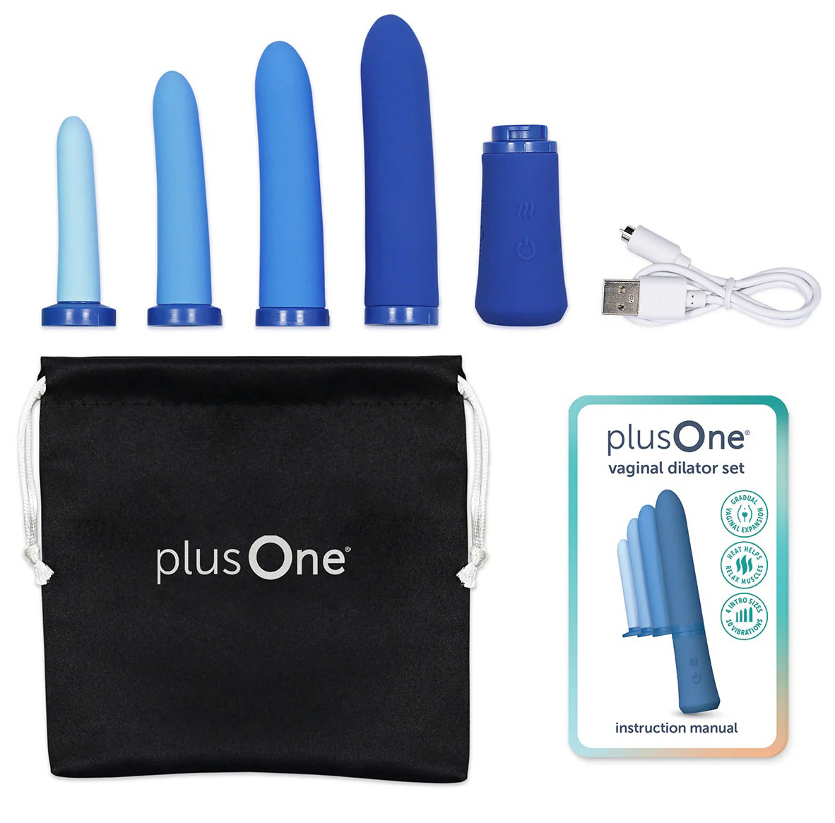 Sada hřejivých vibračních vaginálních dilatátorů plusOne 4 ks