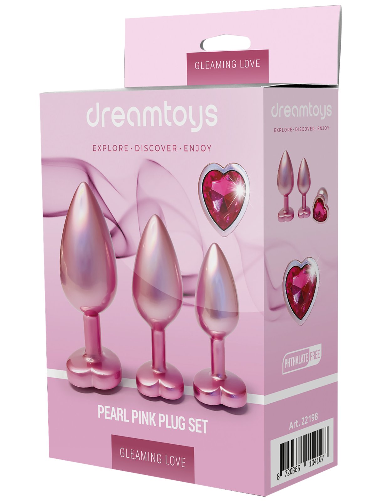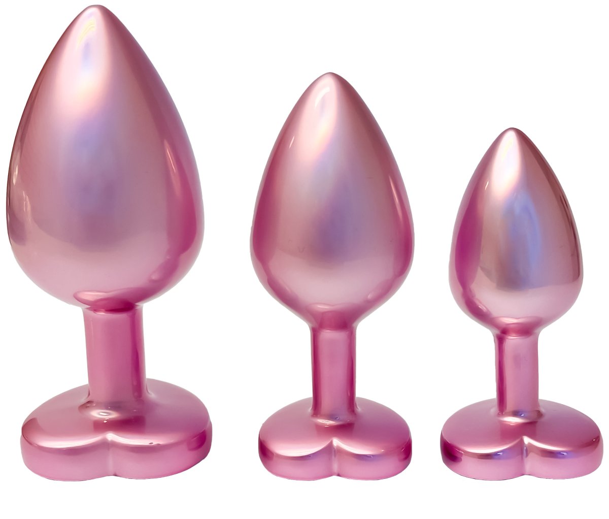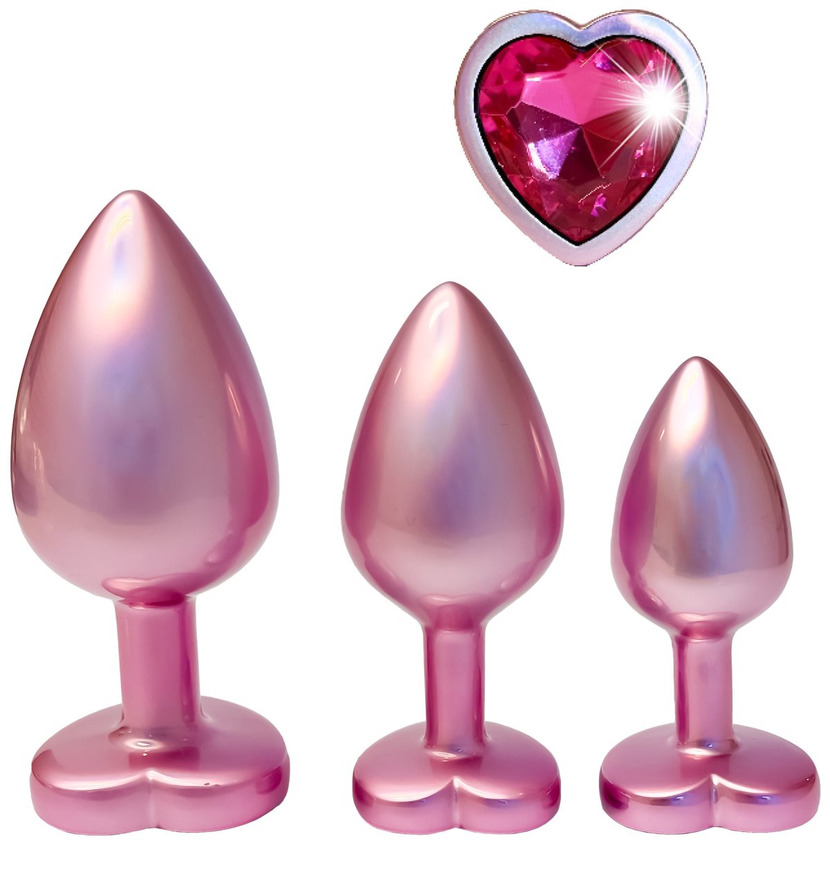 Sada kovových análních kolíků se srdíčkem Pearl Pink Plug Set