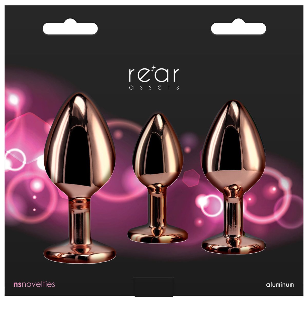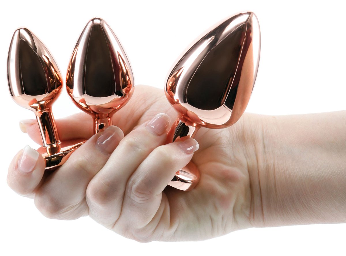 Sada Rear Assets Rose Gold obsahuje 3 kolíky různé velikosti – můžete je využít k tréninku zadečku nebo párovým hrám.