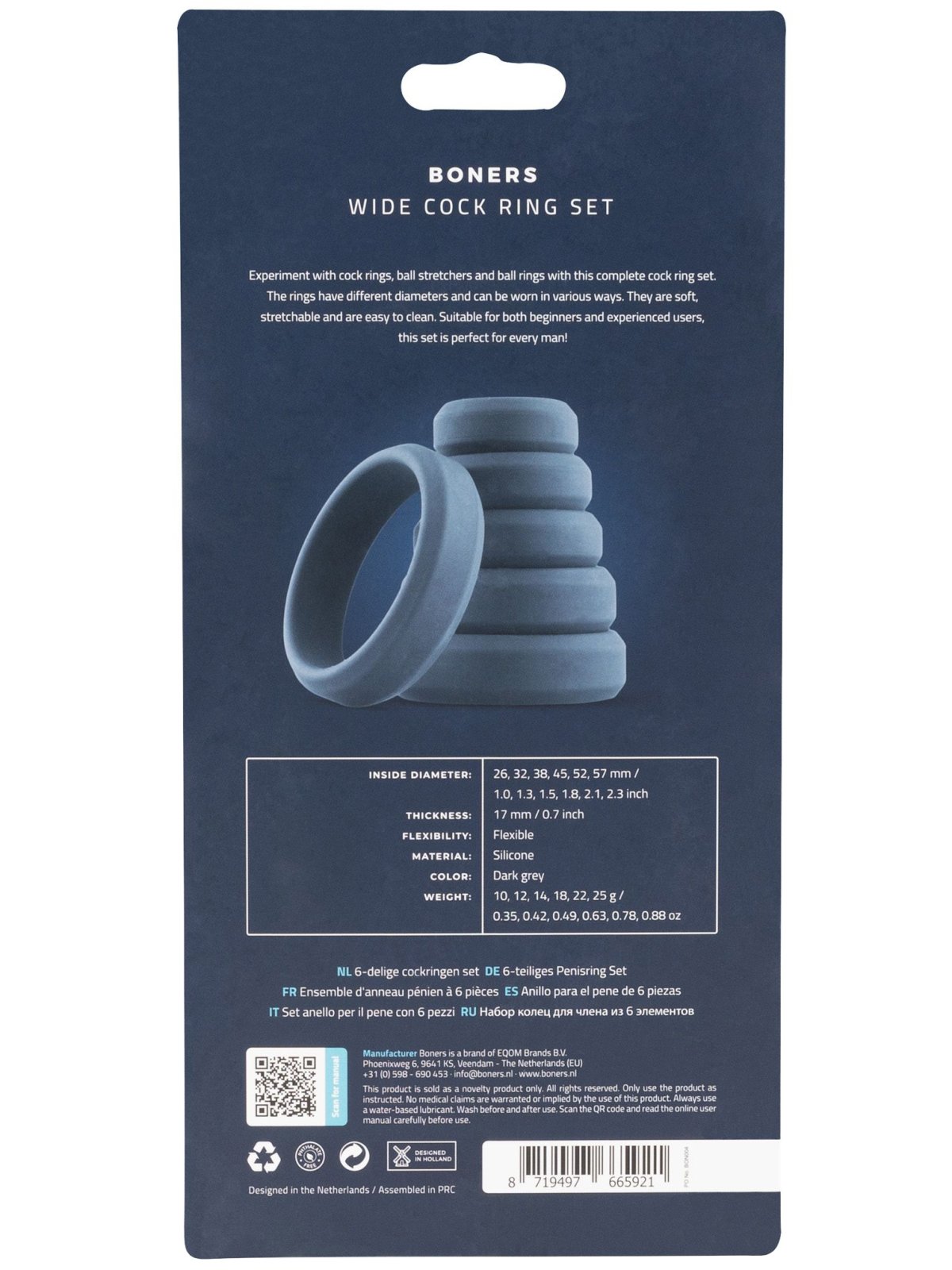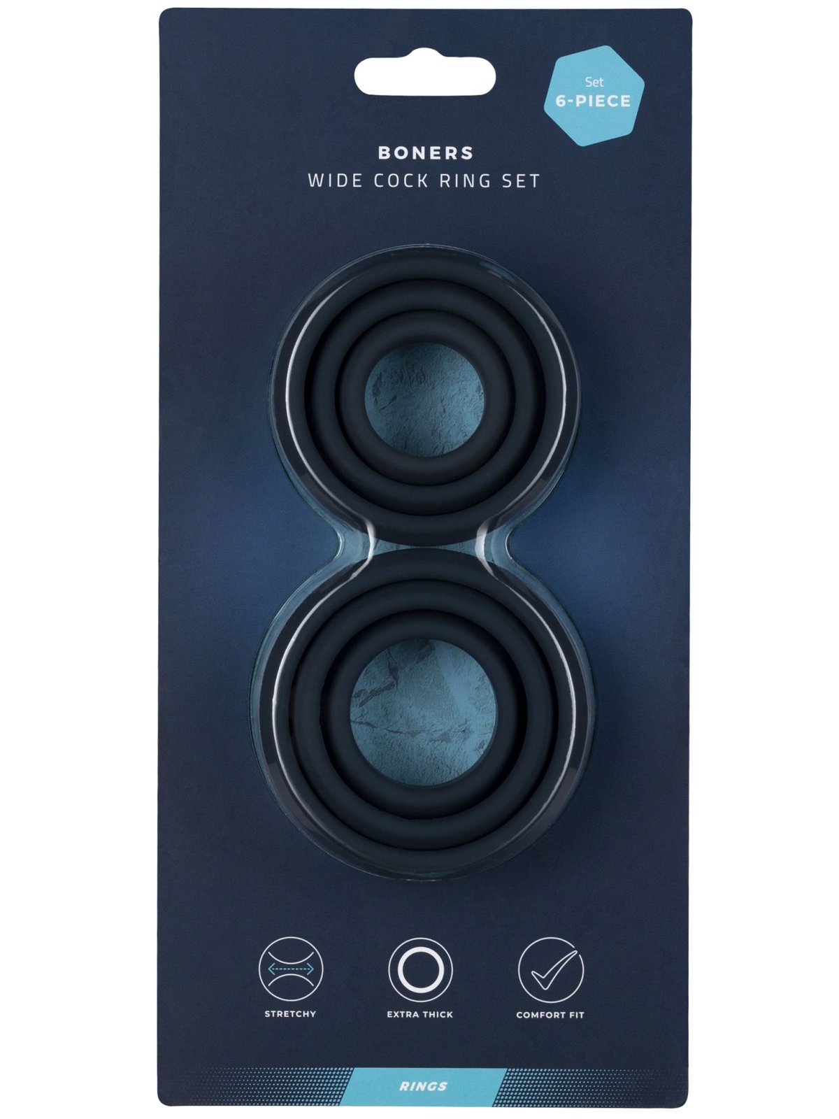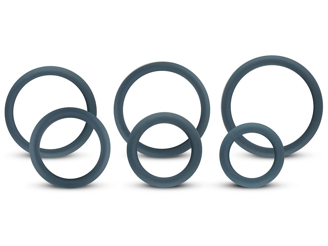 Sada obsahuje 6 kroužků o různém průměru – snadno si přizpůsobíte míru zaškrcení a můžete zaškrtit penis, varlata i obojí najednou.