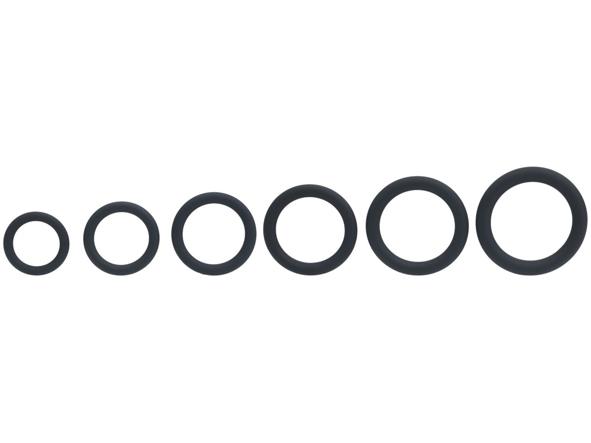 Sada obsahuje 6 kroužků o různém průměru. Můžete jimi zaškrtit penis i varlata a různě je kombinovat, abyste dosáhli optimálního zaškrcení a lepší erekce.