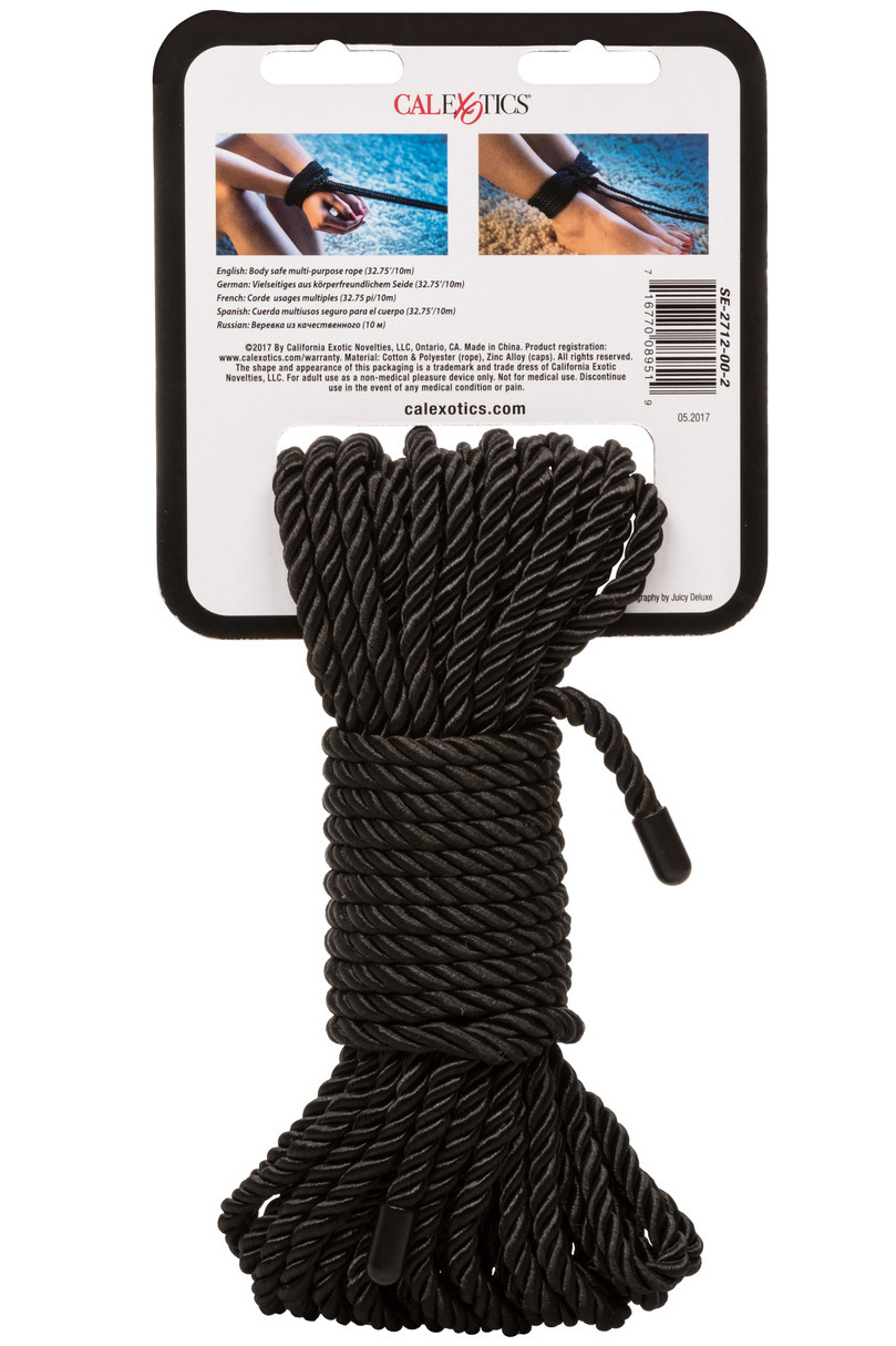 Lano je lesklé, hebké a pevné a má kovové koncovky – nemusíte se bát, že by se začalo třepit. Díky délce 10 metrů se hodí na znehybnění ženského i mužského těla.