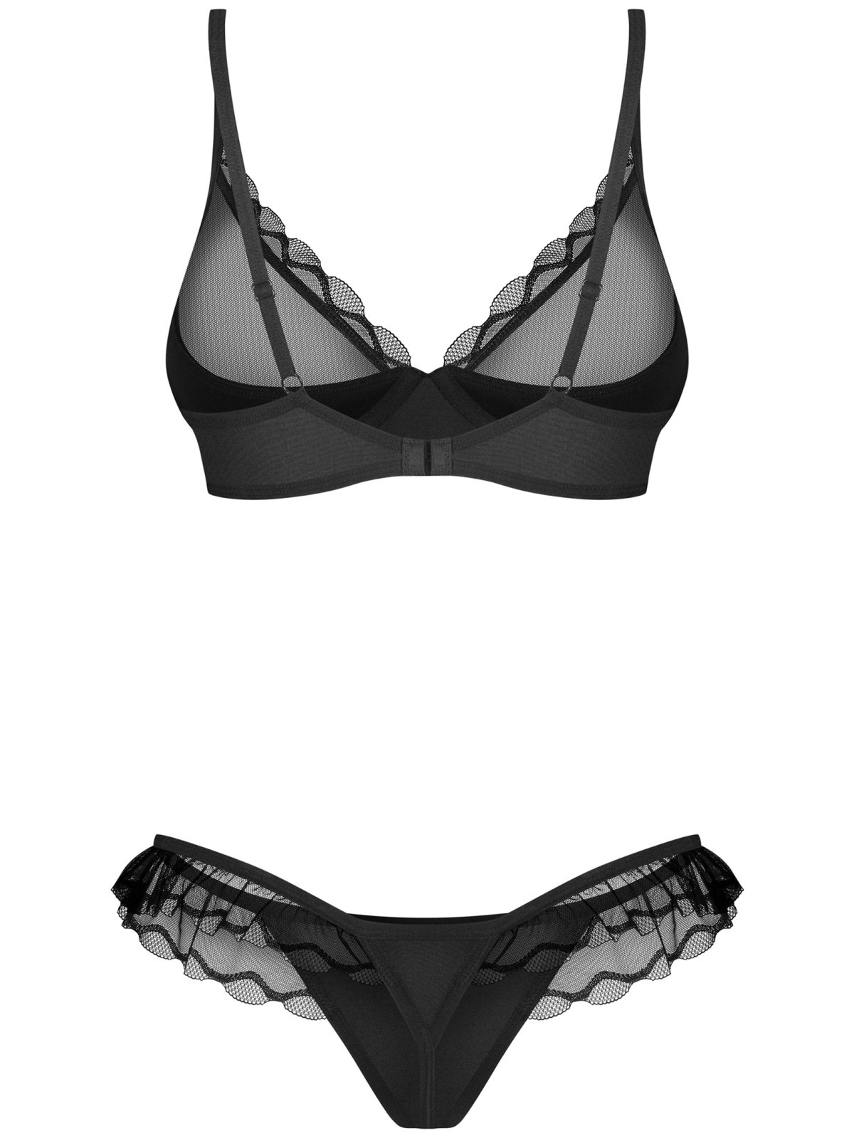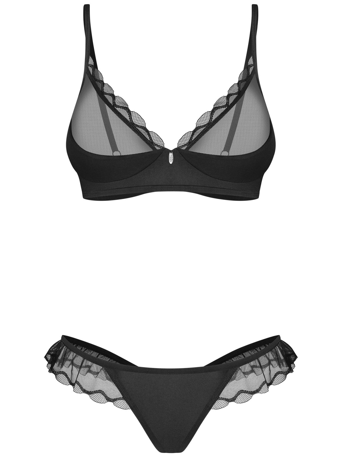 Set se skládá z podprsenky a tang. Oba kousky jsou ušity z měkké a elastické průsvitné látky, která se pohodlně nosí.