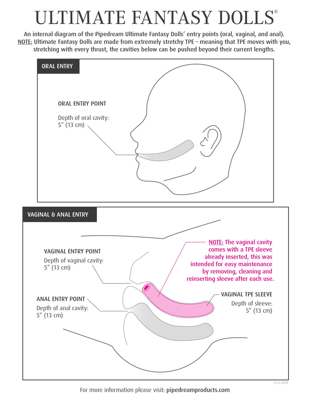 - Otvory: ústa, vagina, anální otvor (hloubka otvorů 13 cm)