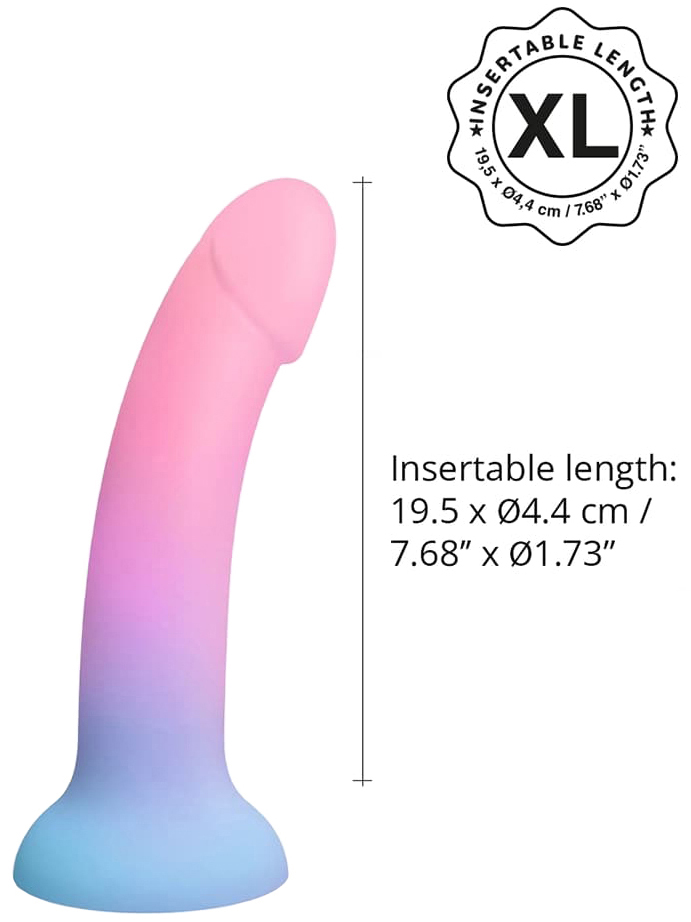 - Rozměry: celková délka 21 cm (včetně přísavky), zasunutelná délka 19,5 cm, max. průměr 4,4 cm