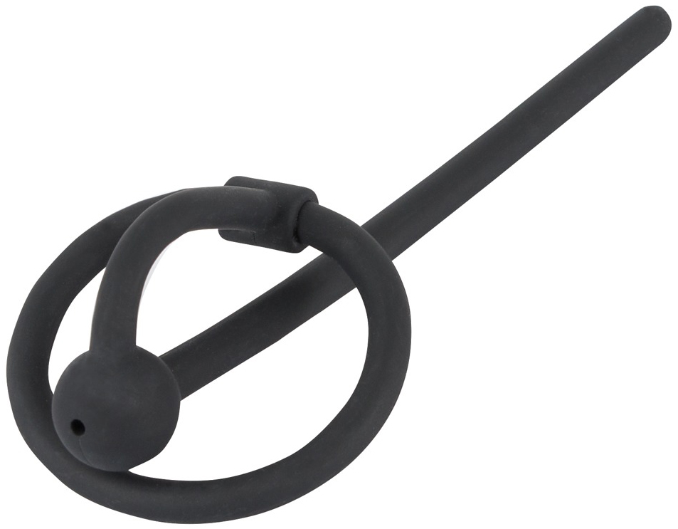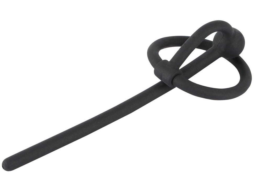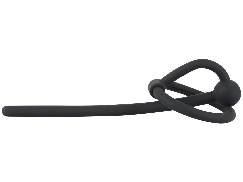 Je vyrobený z ohebného silikonu, takže se snadno přizpůsobí tvaru penisu, a zakončený kuličkou, která slouží jako zarážka – kolík díky ní nezajede do penisu celý.