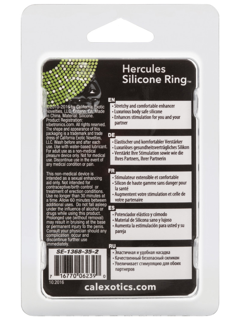 UPOZORNĚNÍ: Maximální doba nasazení bez přestávky by neměla přesáhnout 20 minut. V případě nesprávného použití hrozí trvalé poškození penisu. Pokud pozorujete bolest, změnu barvy penisu (do modra) či výrazný otok, kroužek okamžitě sundejte. Jestliže to není možné, okamžitě vyhledejte lékařskou pomoc.