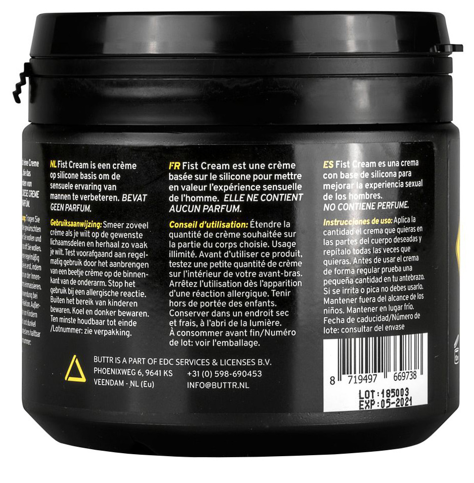 BUTTR Fist Cream je založený na silikonové bázi. Je hustý a má bohatou krémovou konzistenci, takže nestéká a usnadňuje penetraci. Hodí se především na fisting a anální sex.