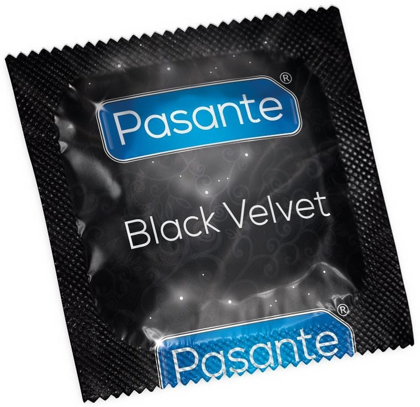 Kondom PASANTE Black Velvet z přírodního latexu – klasicky střižený, mírně širší pro větší komfort; v černé barvě.