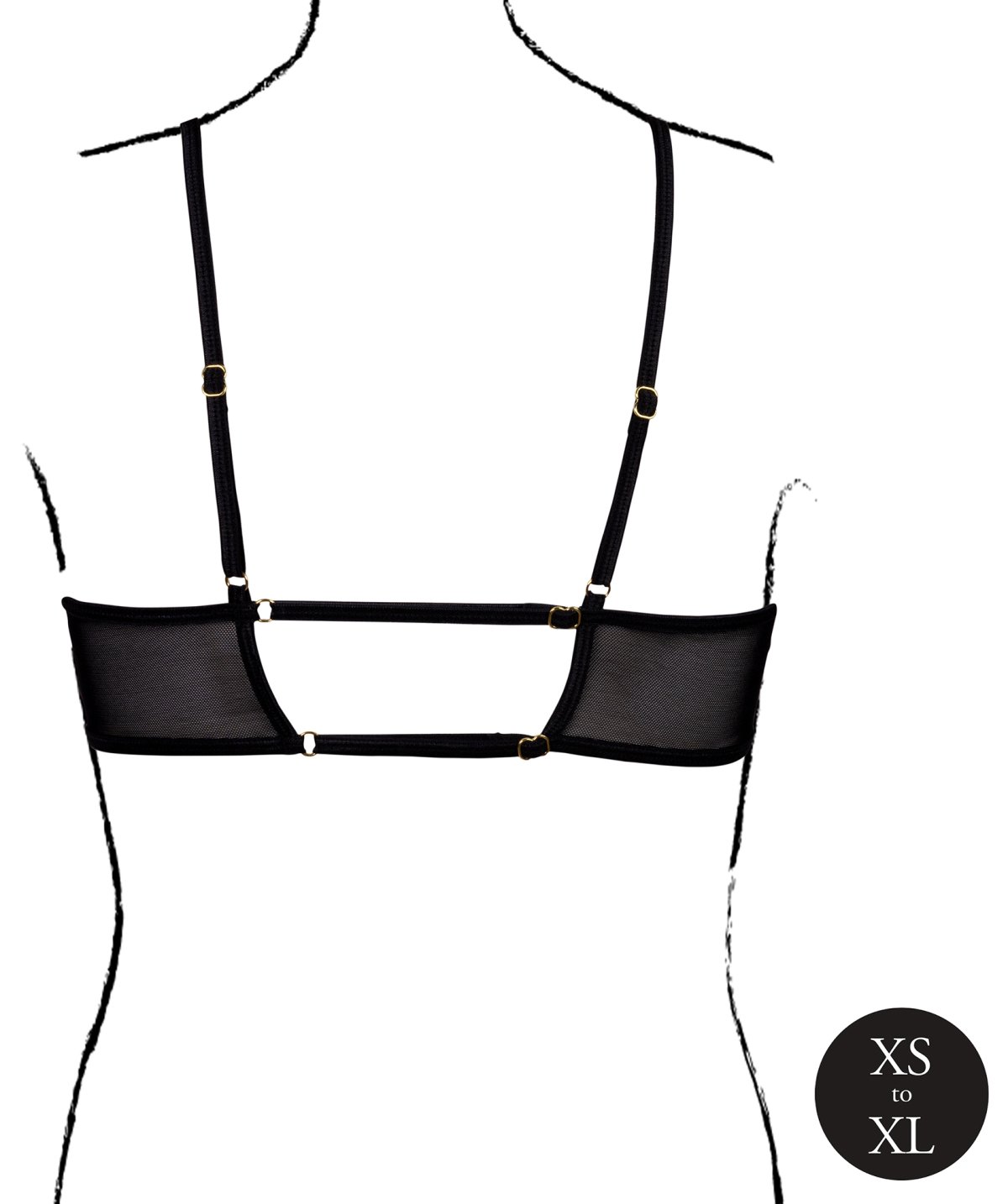 Podprsenka je ušitá z měkké a elastické síťoviny, takže se pohodlně nosí. Ramínka a řemínky na zádech jsou délkově nastavitelné – velikost si snadno upravíte podle potřeby.