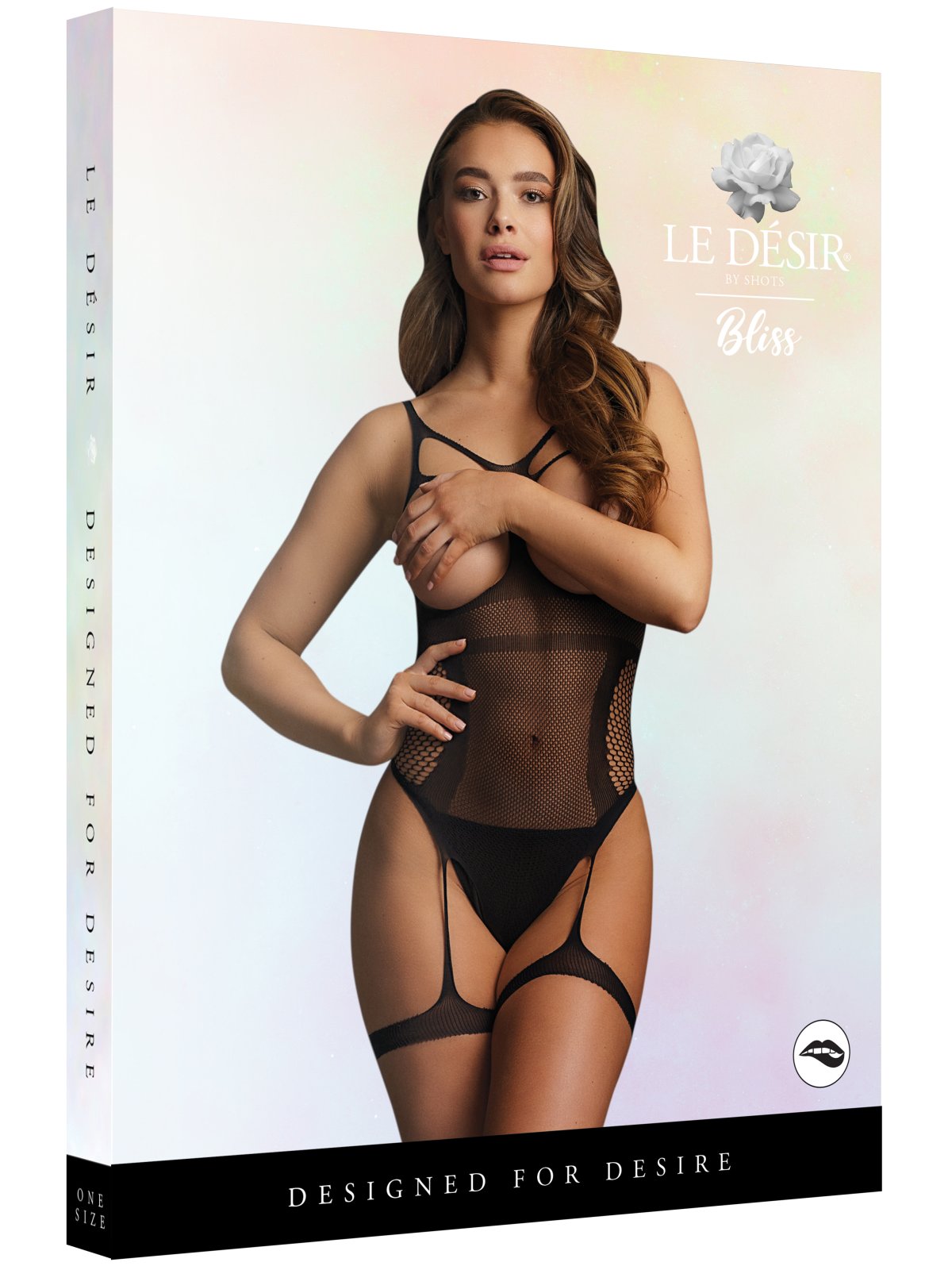 Síťované body s odhalenými ňadry a podvazky Le Désir Bliss one size