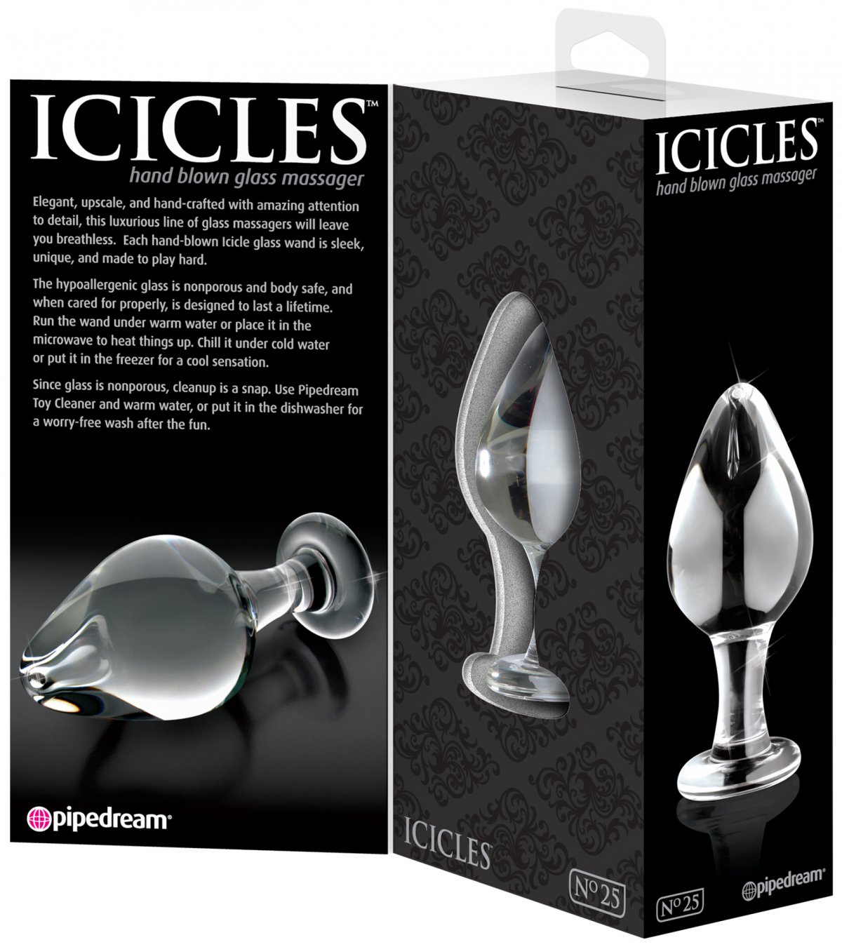 Anální kolík má klasický kónický tvar a praktickou anální zarážku. Sklo můžete snadno zchladit nebo ohřát pomocí studené či teplé vody.