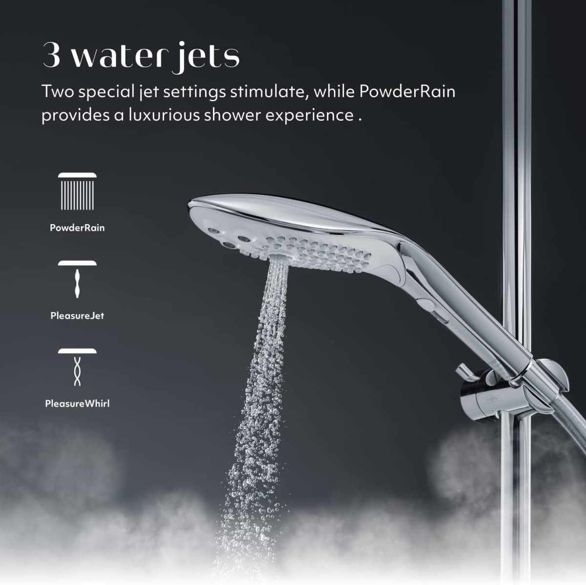 Všechna nastavení trysek jsou pečlivě vyladěna předním výrobcem koupelen Hansgrohe pro optimální výkon.