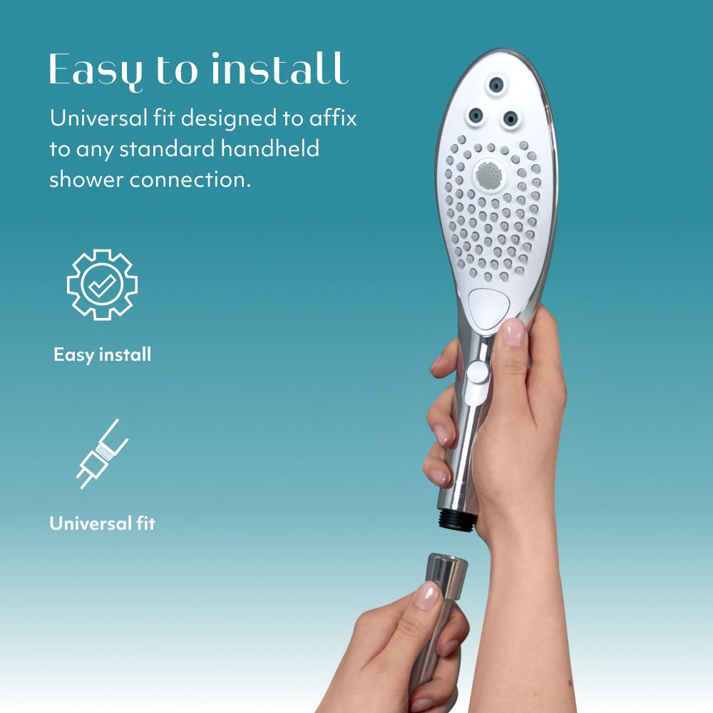 Instalace sprchové hlavice je jednoduchá – pasuje na jakoukoliv běžnou sprchovou hadici.